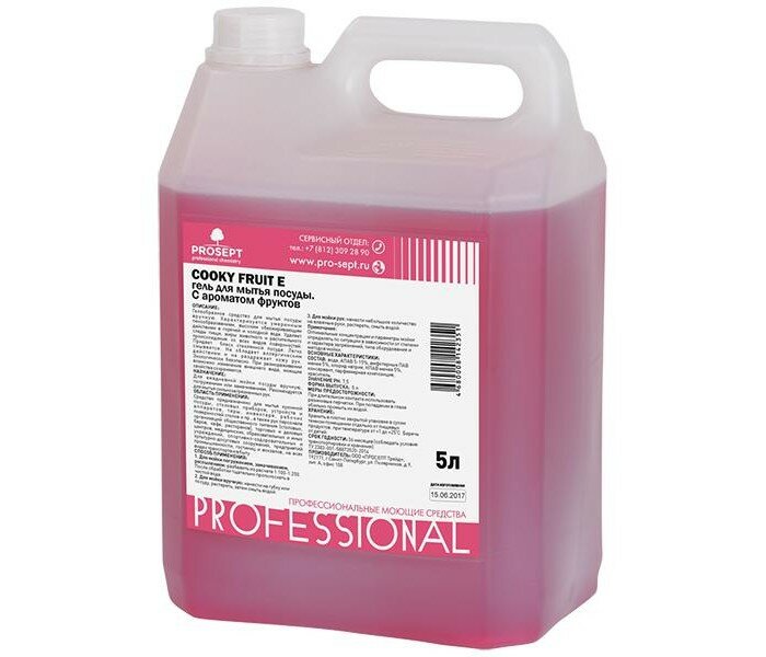Гель для мытья посуды Prosept Cooky Fruit E с ароматом фруктов 5 л Cooky Fruit E Гель эконом-класса для мытья посуды с ароматом фруктов ПЭТ 5 л