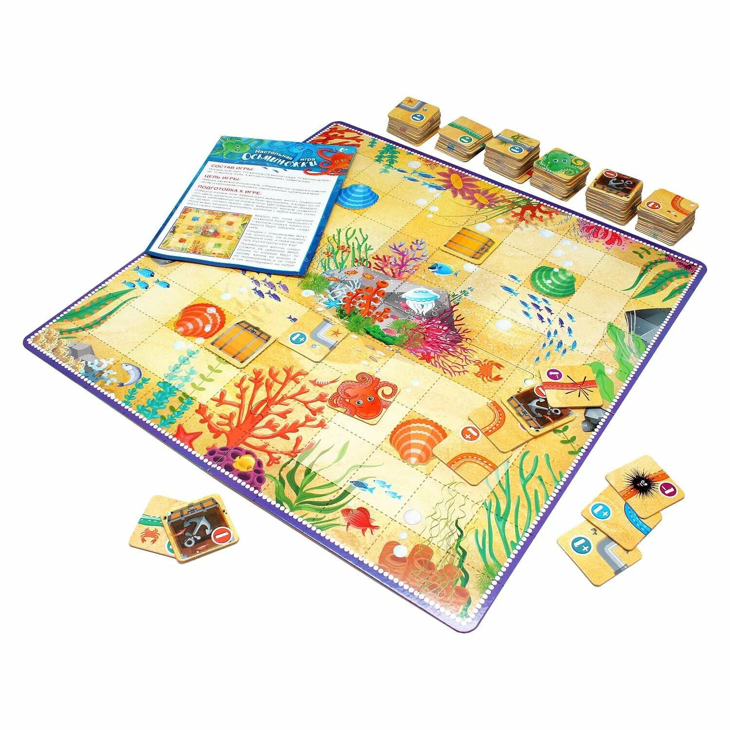 В наборе: поле-пазл, 112 жетонов, правила.