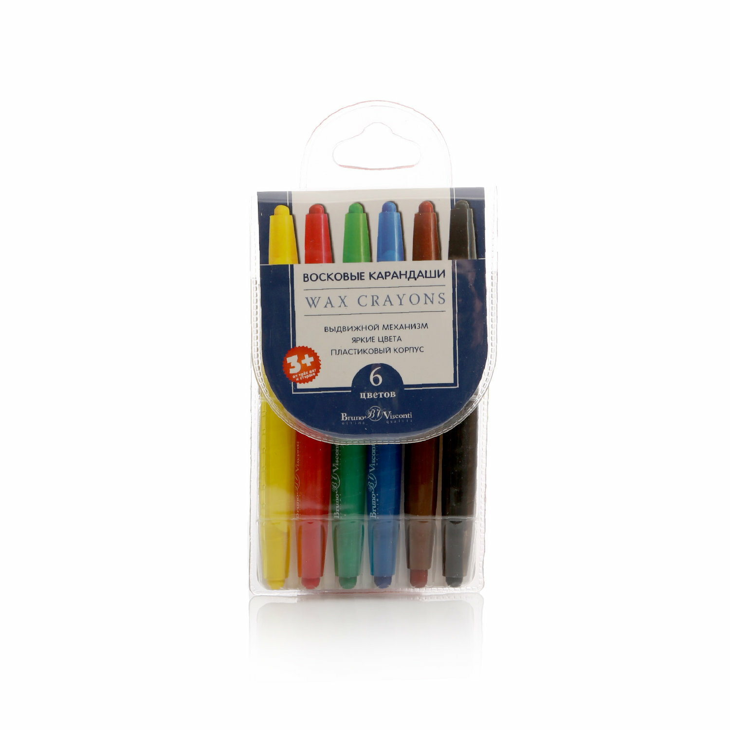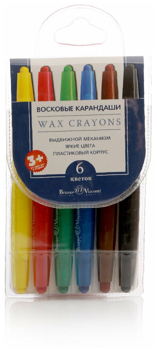 Карандаши восковые в пластиковом корпусе выкручивающиеся.