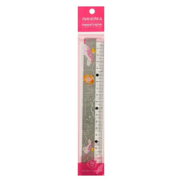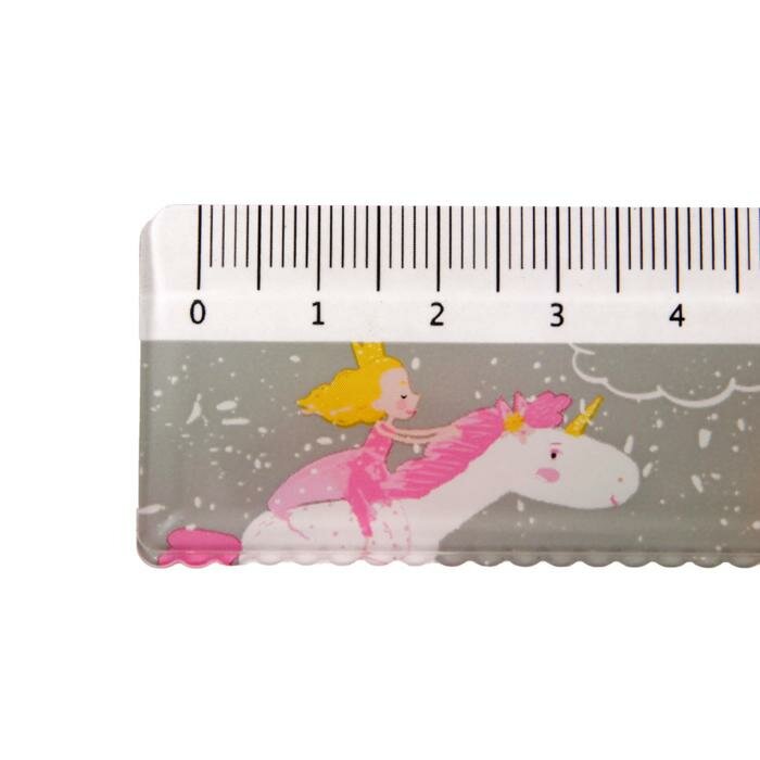Пластиковая линейка "Happy Graphix" с волнистым краем, длиной 20 см, из коллекции "Принцесса и единорог". Выполнена в очаровательном оформлении: на сером фоне изображены принцессы верхом на единорогах. На линейке надпись: "There's a lot to do if you are a princess". Изготовлена из качественного нетоксичного пластика. По верхнему краю линейки расположена прозрачная шкала с разметкой и цифрами. Есть фаска, которая поможет точно приложить линейку. Риски шкалы, с акцентом на каждые пять сантиметров, нанесены тиснением и не сотрутся. Нижняя сторона линейки предназначена для черчения волнистых линий. В этой серии также выпускаются и другие канцелярские товары для школы. Можно собрать комплект с дневником, тетрадями, пеналом. В стандартной упаковке 24 шт. в индивидуальных пакетах с европодвесом.