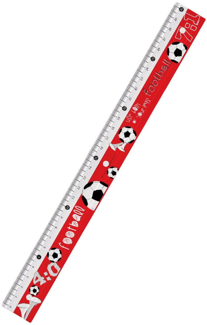 Пластиковая линейка с антискользящими вставками, длинной 30 см, из серии "Футбол. Чемпионы". Особенно порадует тех, кто поддерживает команду Англии. Линейка украшена футбольной атрибутикой в красно-белых цветах: мячи, дудки, надпись "Football", счет. Выполнена из качественного нетоксичного пластика. Прозрачная шкала с разметкой и цифрами расположена по верхней грани линейки. Есть фаска, которая поможет точно приложить линейку. Риски шкалы, с акцентом на каждые пять сантиметров, нанесены тиснением и не сотрутся. Углы закруглены для безопасности использования. В стандартной упаковке 24 шт. в индивидуальных пакетах с европодвесом.