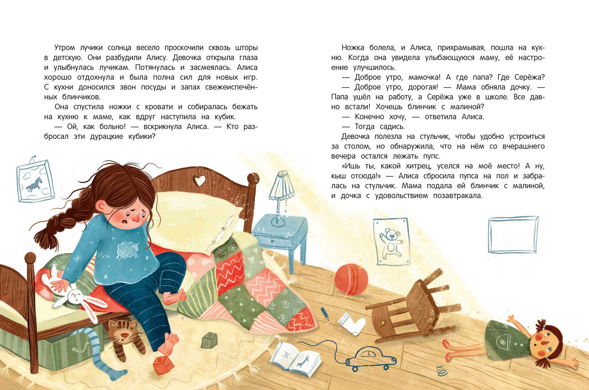 Терапевтические сказки про девочку Алису помогут ребёнку разобраться в сложных ситуациях и в понятной форме расскажут, почему нужно убирать игрушки, как не бояться похода к врачу, зачем нужно умываться и принимать ванну, как делиться игрушками и почему не стоит бояться монстров.