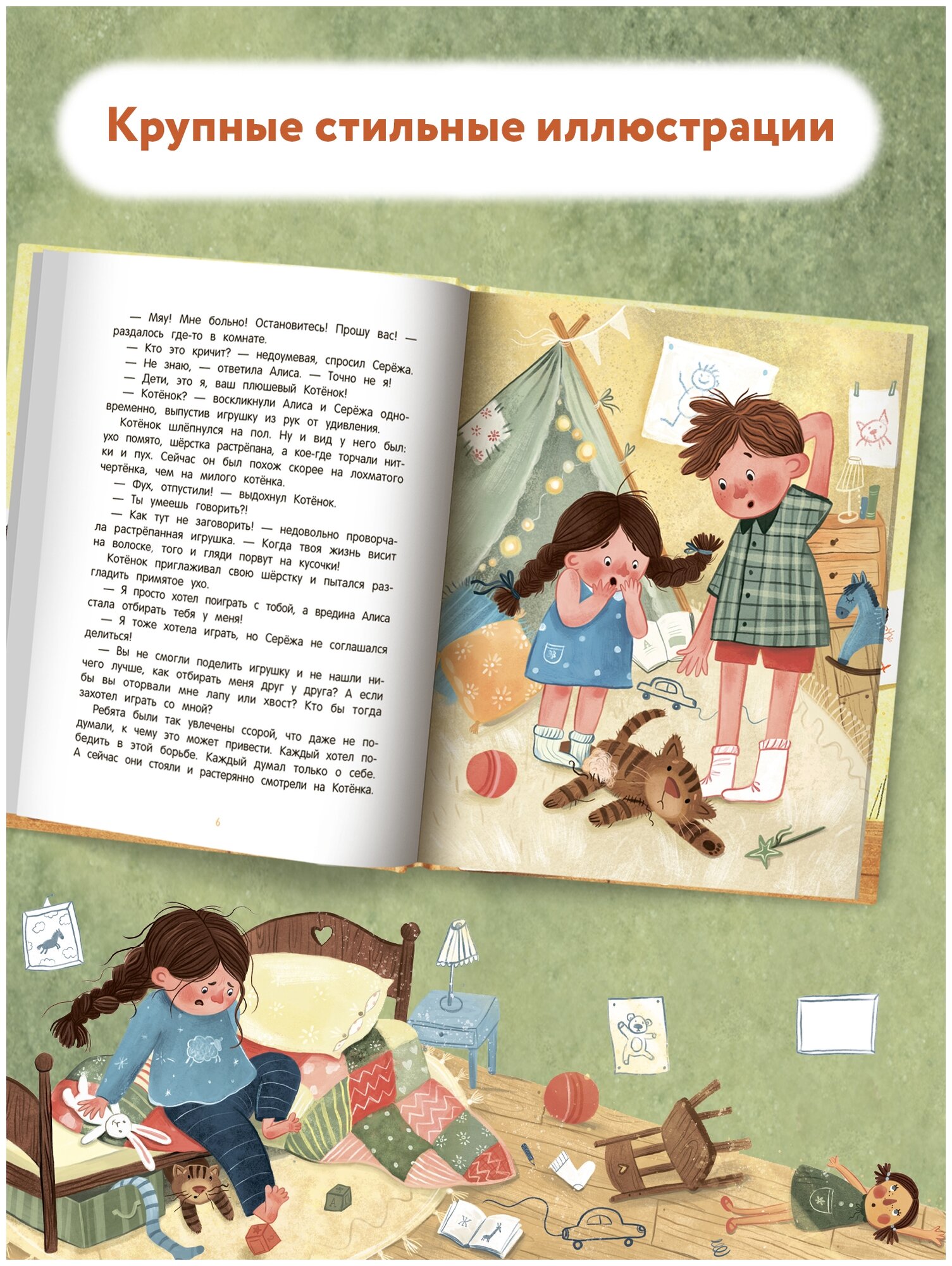 Книга отличная! В ней несколько историй для обсуждения с ребенком. Разобраны разные распространенные ситуации: как поделиться игрушками и как решить, кто играет первым, почему нужно умываться и купаться, как побороть свои страхи (и даже сделать их смешными), как подготовить ребенка к походу к врачу. Все решения довольно творческие, креативные, но отлично применяются на практике в любой семье, очень универсальные. Книга написана очень простым языком, ребенок слушает увлеченно, задает вопросы. Читаем с удовольствием. И в книге много красивых картинок, плотная хорошая бумага, твердый переплет. Нам понравилась