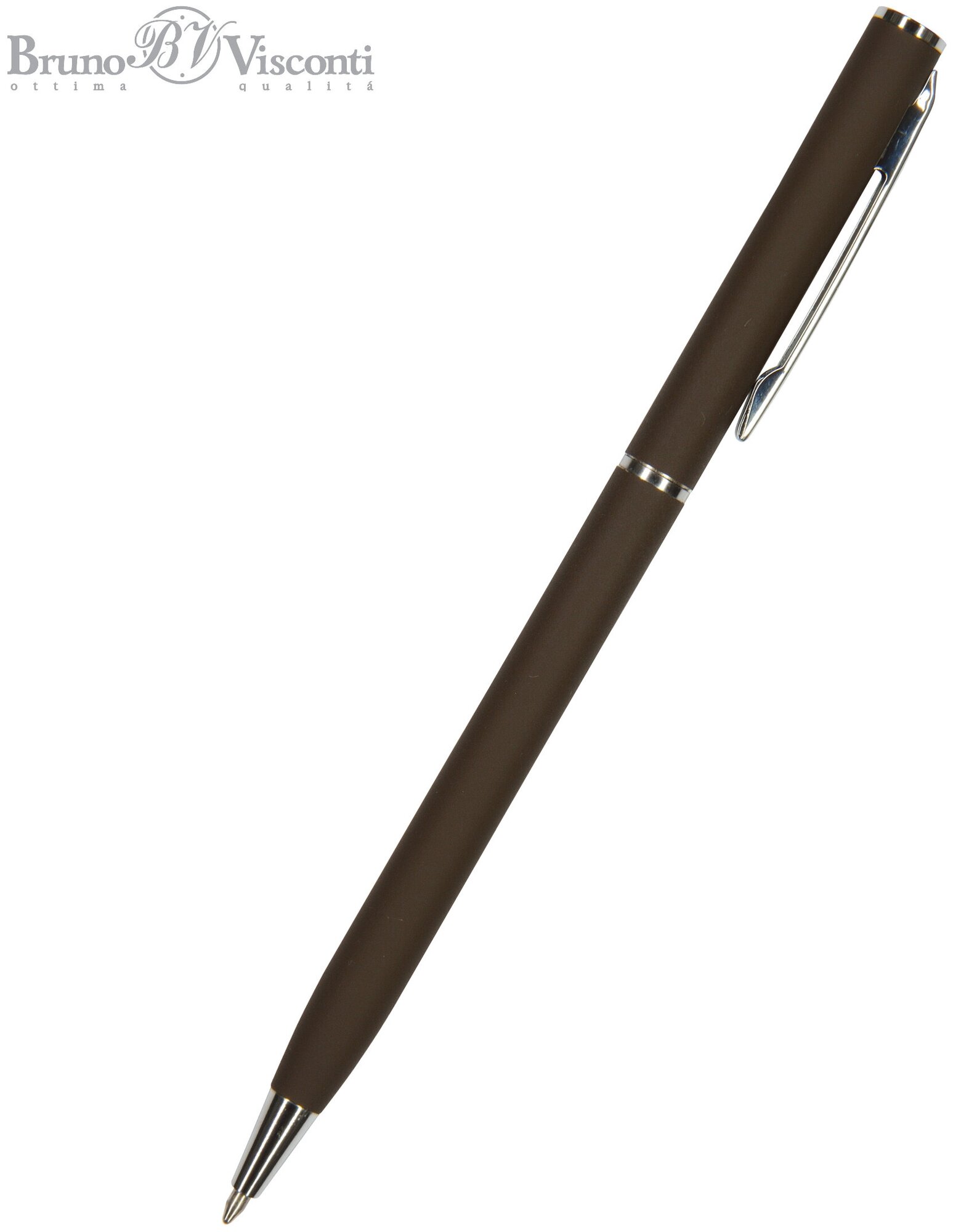 Маленькая металлическая ручка BrunoVisconti серии PALERMO в коричневом корпусе. Покрытие корпуса Soft Touch. Синие пигментные чернила DOKUMENTAL. Мягкое письмо. Пишущий узел пулевидный, толщиной 0,7 мм. Длина стержня 117 мм. Металлический корпус и клип. Длина ручки 130 мм, диаметр корпуса ручки 0,7 мм.