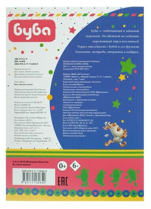 Любопытный и забавный Буба обожает исследовать окружающий мир и веселиться! Укрась наклейками с Бубой и его друзьями блокноты, тетради, открытки и подарки.