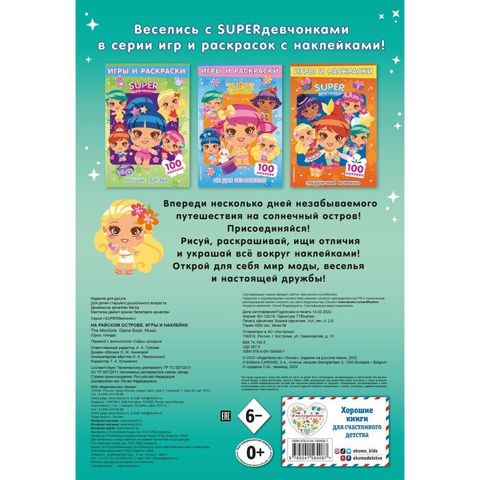 SUPERдевчонки. На райском острове. Игры и наклейки (Цоцериа София Малхазовна (переводчик), Дегтярёва Т.); ООО "Издательство "Эксмо", 2022