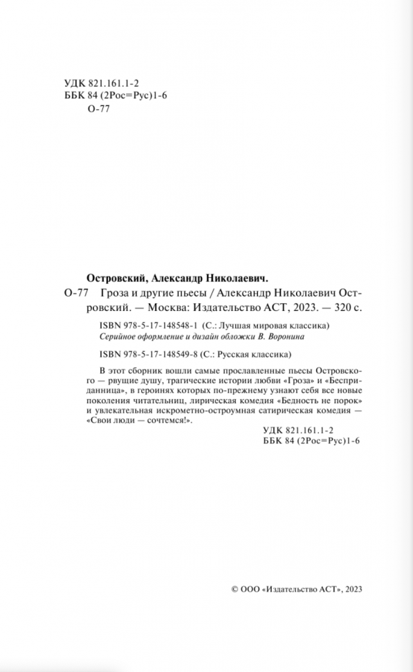 Книга: Гроза и другие пьесы (Островский Александр Николаевич); ИЗДАТЕЛЬСТВО "АСТ", 2022
