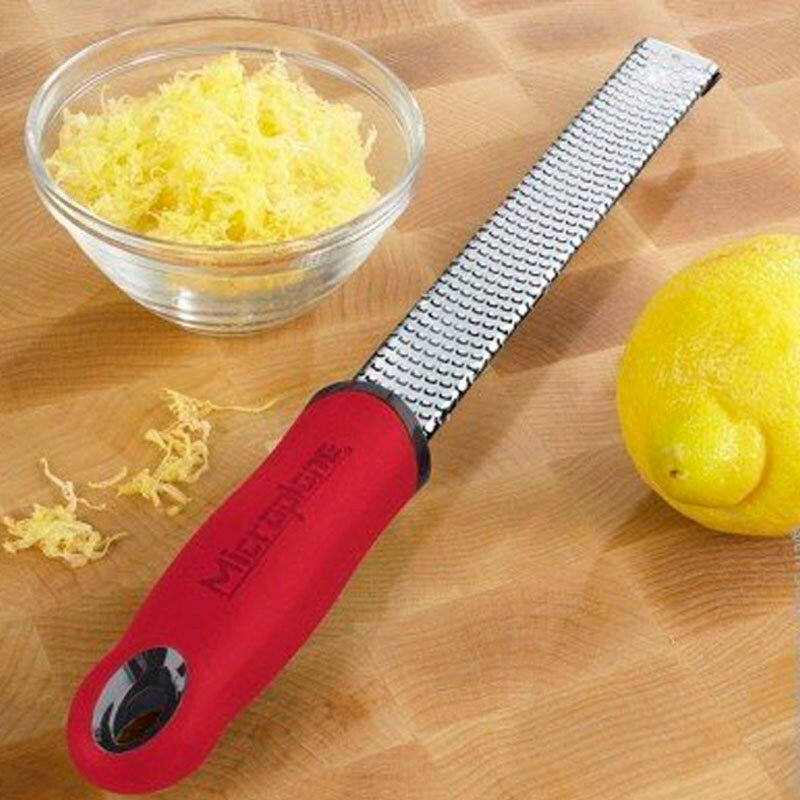 Лезвие из нержавеющей стали с эргономичной резиновой рукояткой предназначено для натирания твердых сортов сыра типа пармезан, а также для цитрусовой цедры.