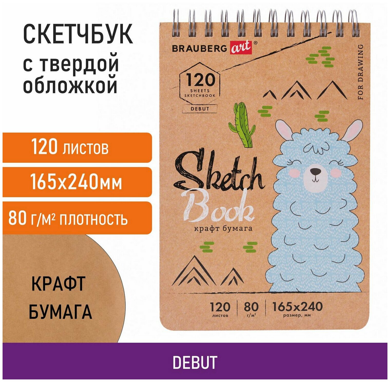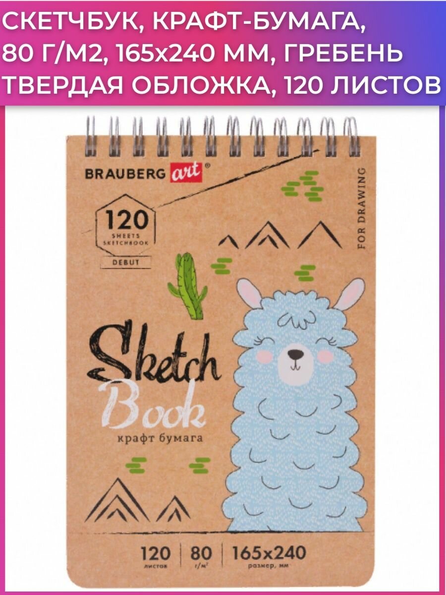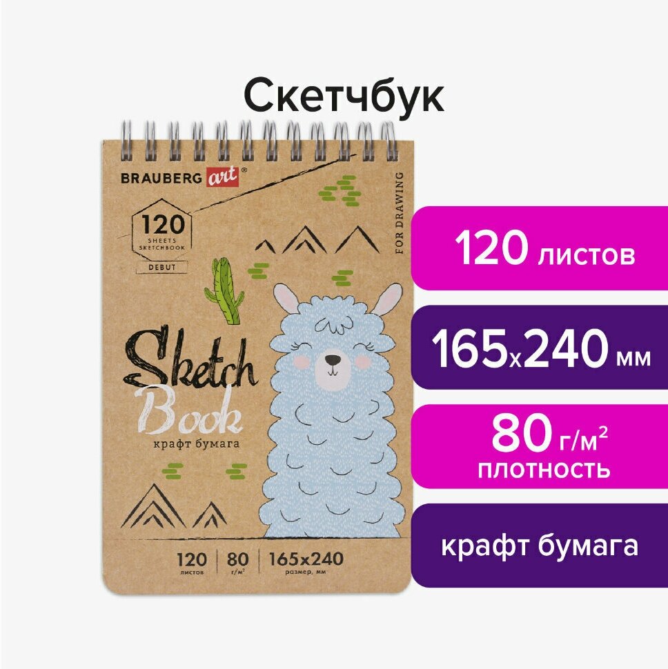 Скетчбук Brauberg Art «Debut» для эскизов и графики. Внутренний блок - специальная художественная гладкая крафт-бумага коричневого оттенка. Подходит для работы с широким спектром графических материалов (уголь, соусы, карандаши и прочие).