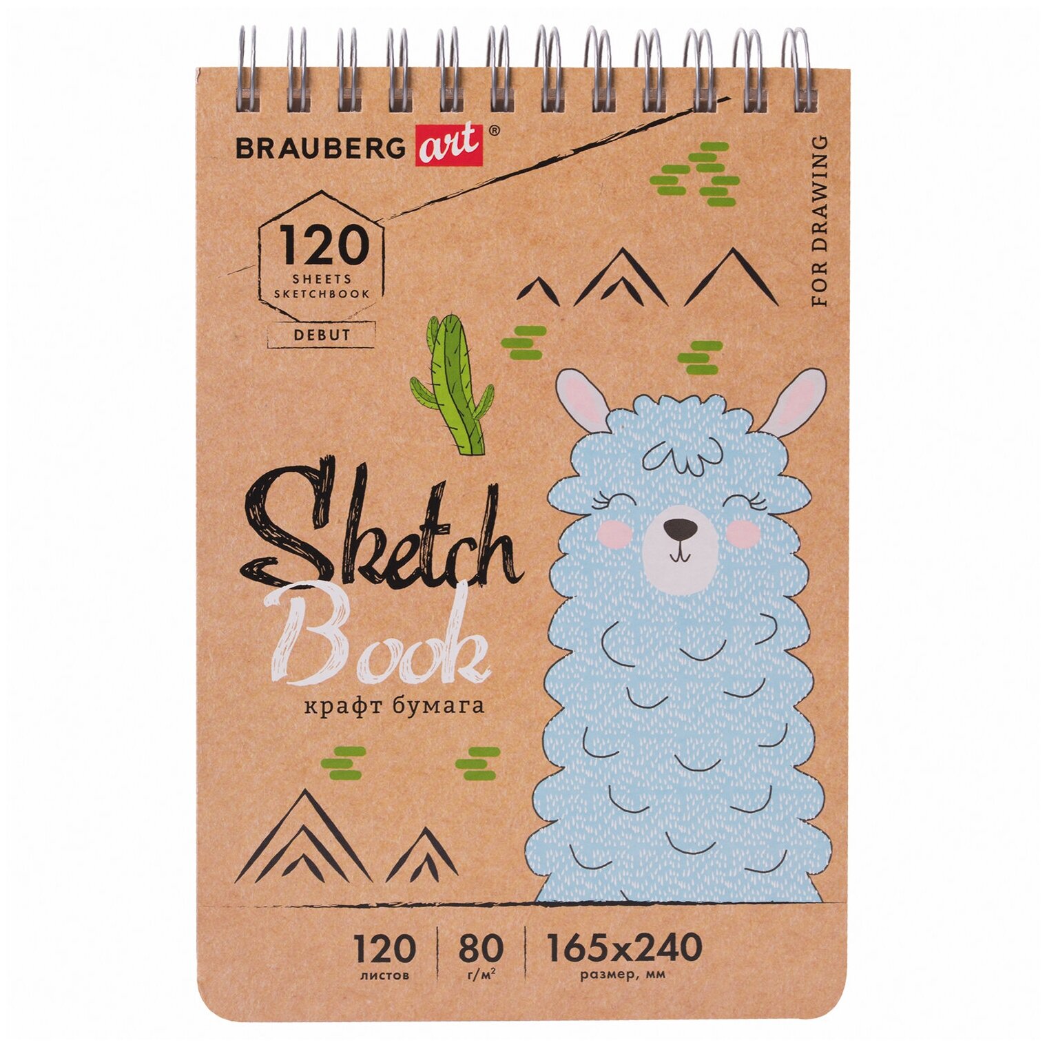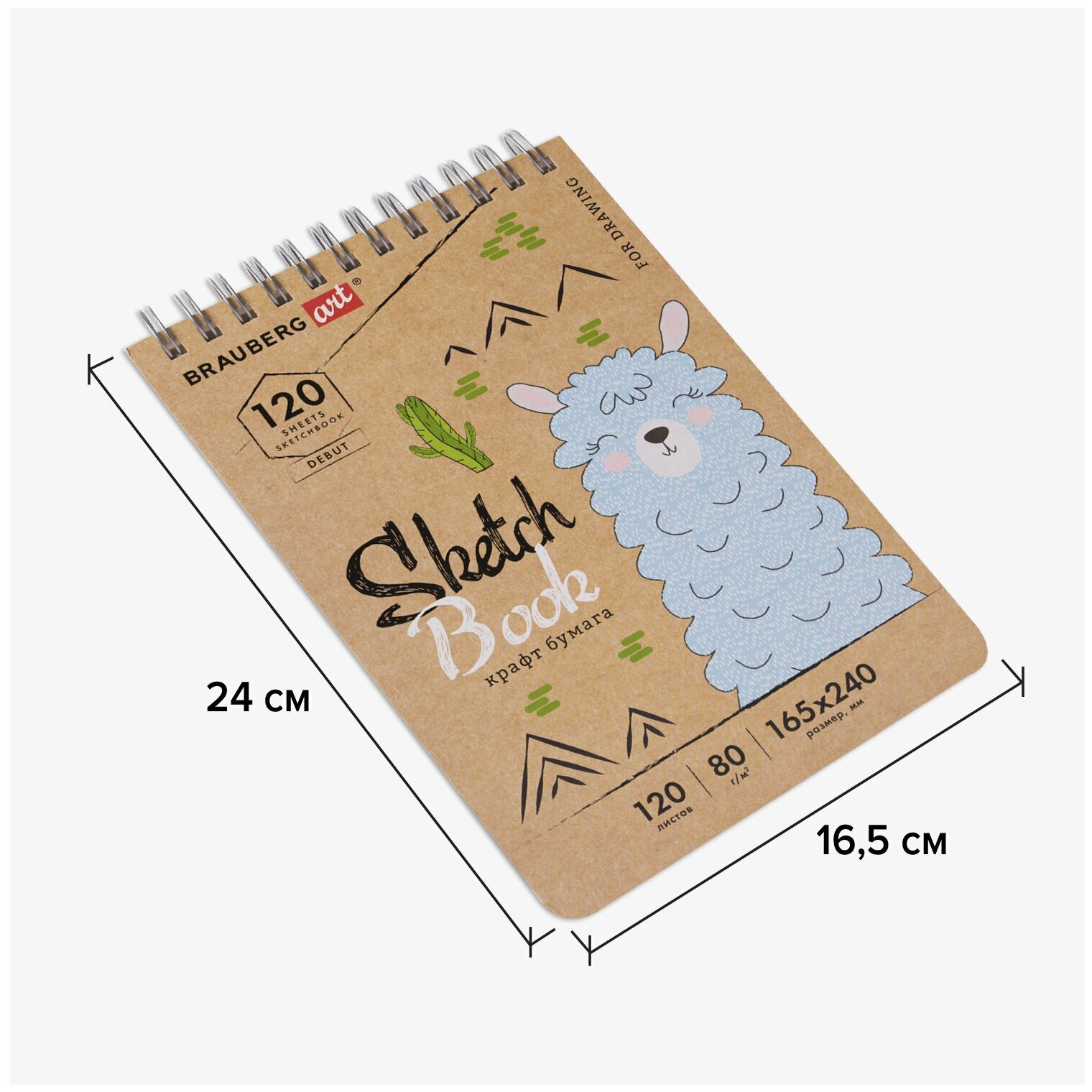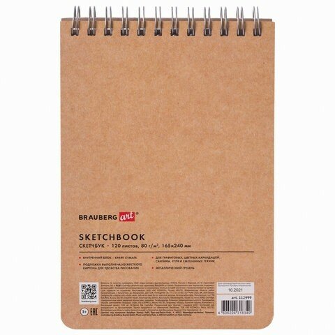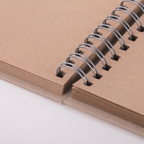 Привлекательная обложка выполнена из твердого переплетного картона. В скетчбуке 120 листов крафт-бумаги плотностью 80 г/м2, т.е. 120 возможностей воплотить свою задумку! Листы удобно скреплены спиралью - это позволяет переворачивать их на 180 градусов. Задняя подложка жесткая, что позволит делать зарисовки и наброски «на весу». Удобный формат размером 165х240 мм.