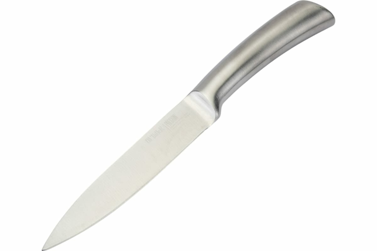 Нож универсальный TalleR Престон 12 смПодходит для очистки, нарезки различных продуктов. Лезвие ножей сделано из высококачественной нержавеющей стали AISI 420S45. Ручка выполнена из нержавеющей стали. Длина ножа 23 см, длина лезвия 12 см, толщина лезвия 1,8 мм.Используйте для заточки точильные камни, мусаты, ножеточки. Рекомендуется ручная мойка.