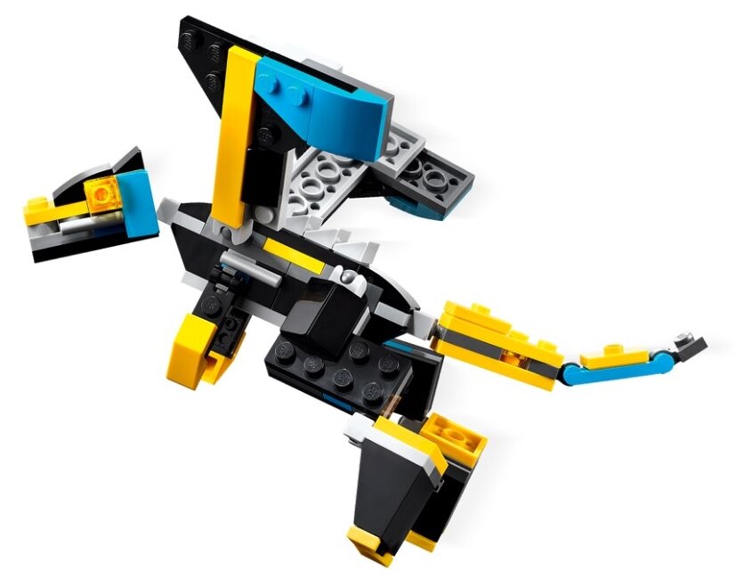 - Игрушка «3 в 1» — набор для сборки «Суперробот» (31124) позволяет детям наслаждаться творческой игрой с тремя моделями в одном наборе: роботом, драконом и реактивным самолётом.