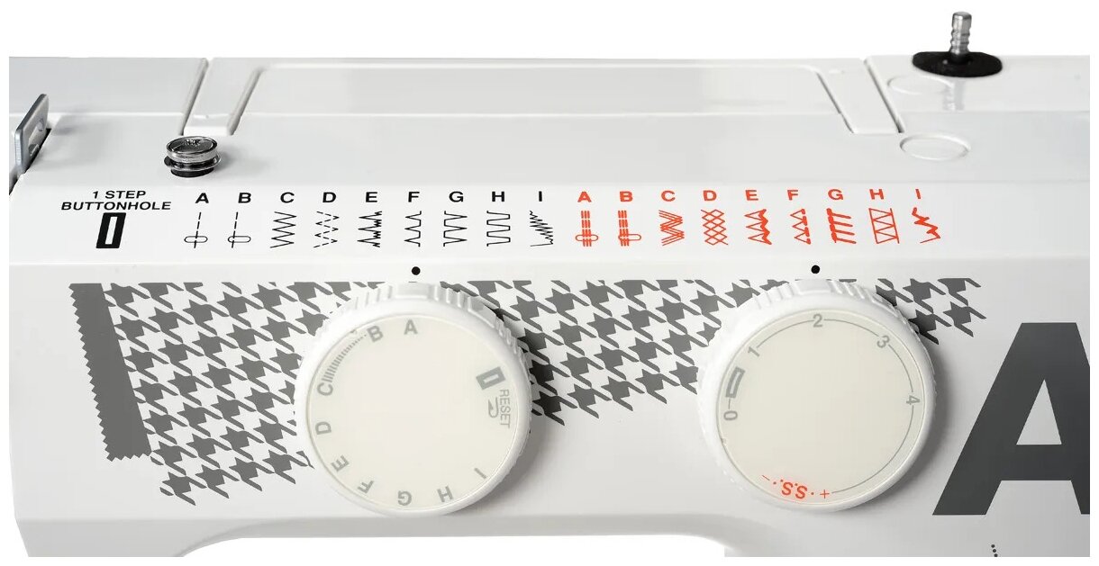 | Комплект поставки | педаль; руководство по эксплуатации (инструкция); лапка стандартная-зигзаг; лапка для обметывания петель; лапка для вшивания молнии; иглы стандартные; шпульки; вспарыватель швов |