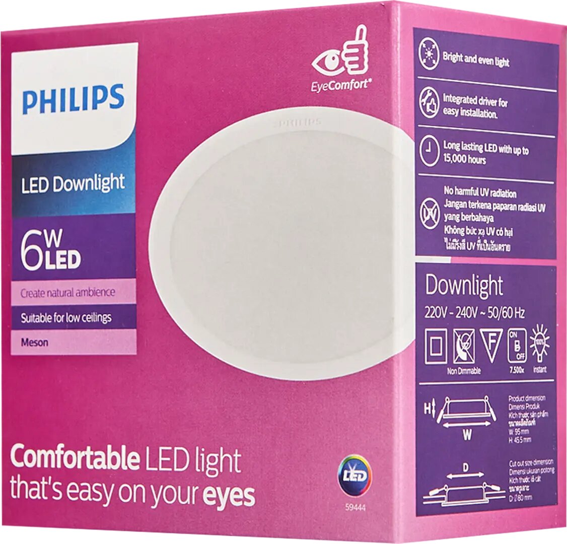 Освещайте свои пространства с помощью светодиодного светильника Philips Meson и наслаждайтесь мягким, равномерным светом из высококачественного рассеивателя и светодиодного источника света.