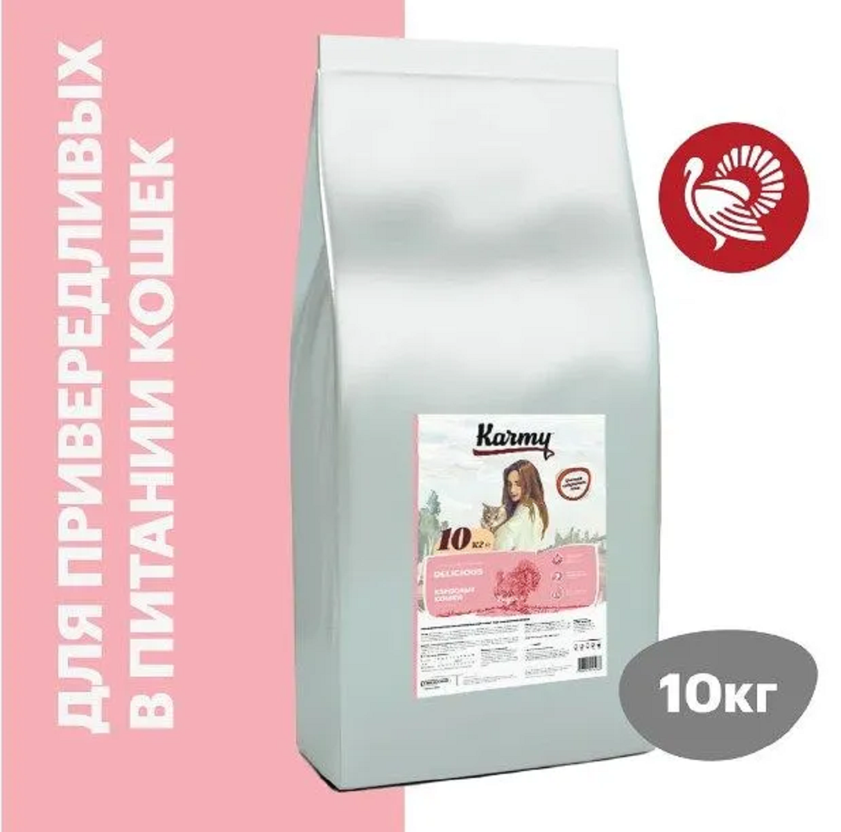 Сухой корм для кошек Karmy Delicious с индейкой 10 кг