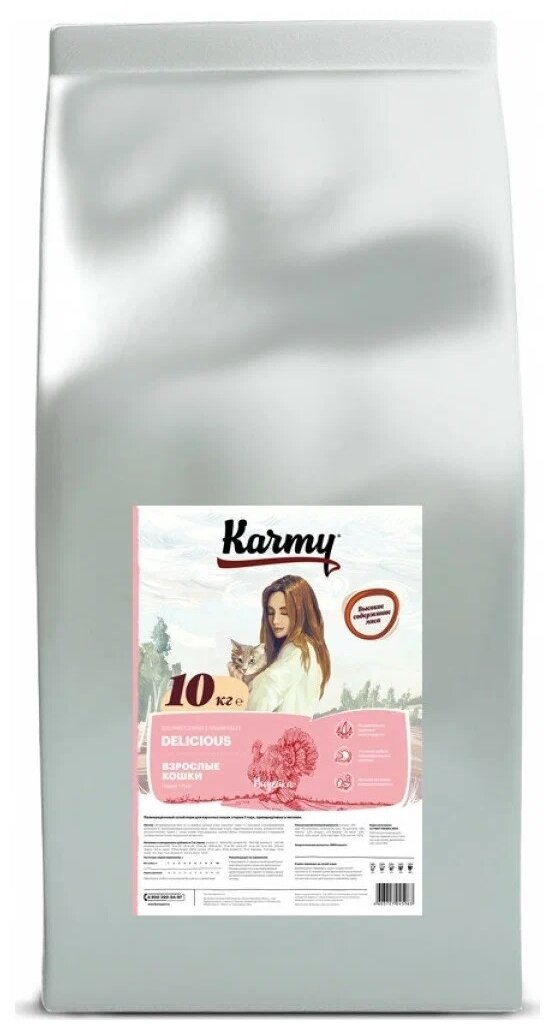Сервис сравнения цен СкидкаГИД предлагает сравнить цены на товар «Сухой корм для кошек Karmy Delicious с индейкой 10 кг»