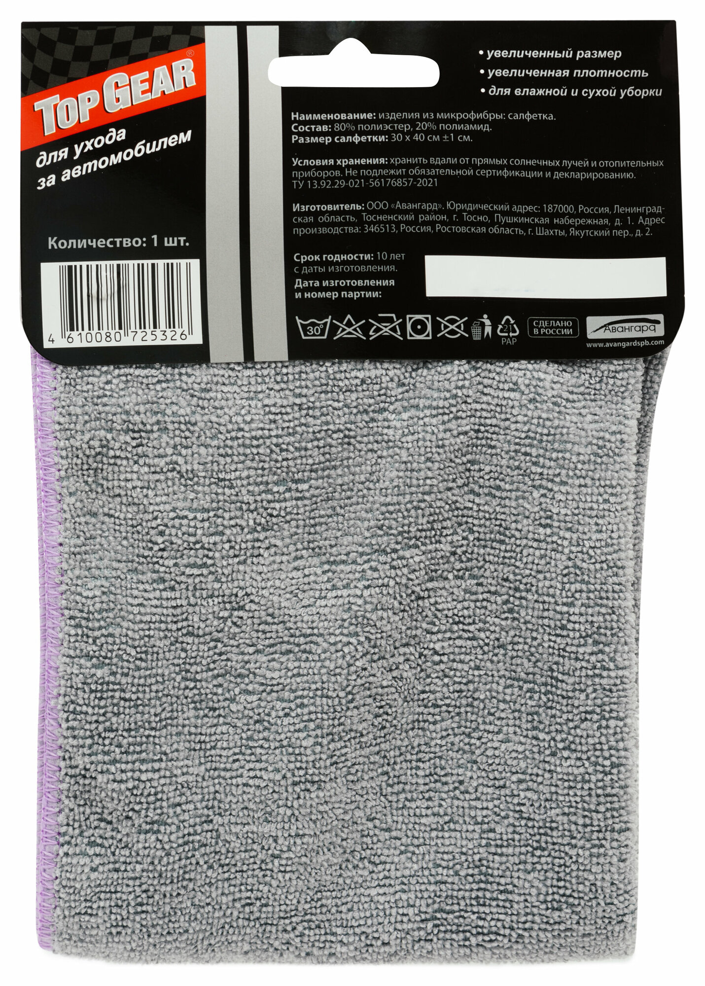 Салфетка автомобильная TOP GEAR 30х40 см микрофибра 1 шт
