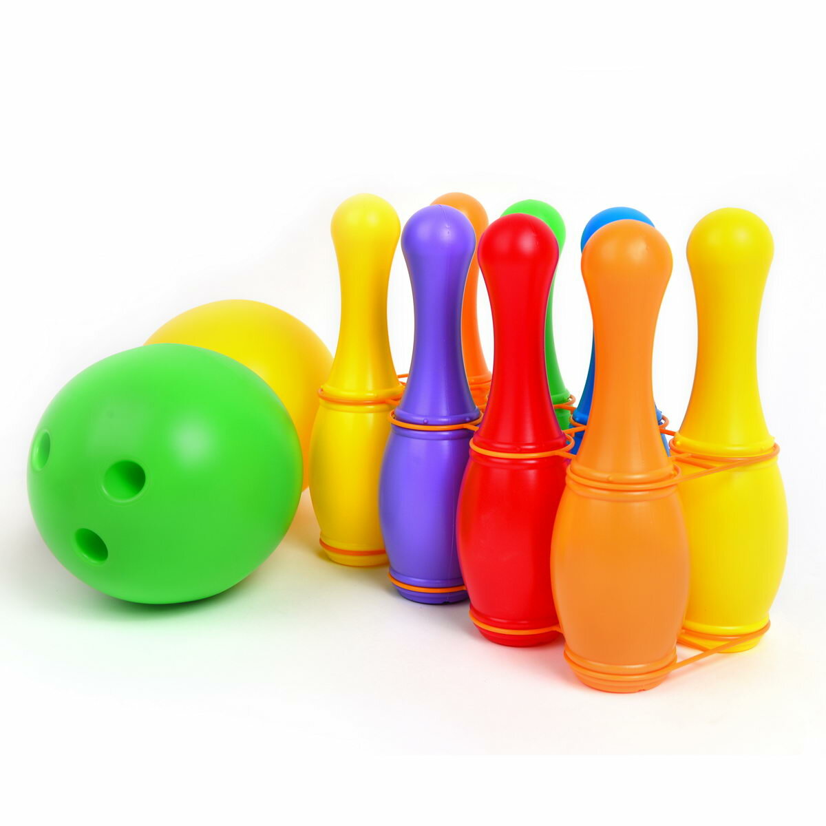 Суть игры заключается в том, чтобы сбить как можно больше кеглей специальным шаром. Выигрывает тот участник, который набирает в сумме наибольшее количество баллов за все этапы. Данный набор изготовлен из высококачественного пластика яркой расцветки. Дети смогут играть как на улице, так и дома.