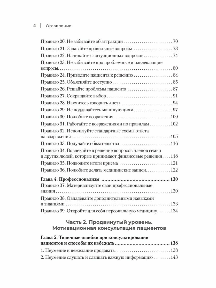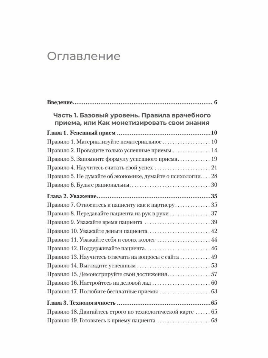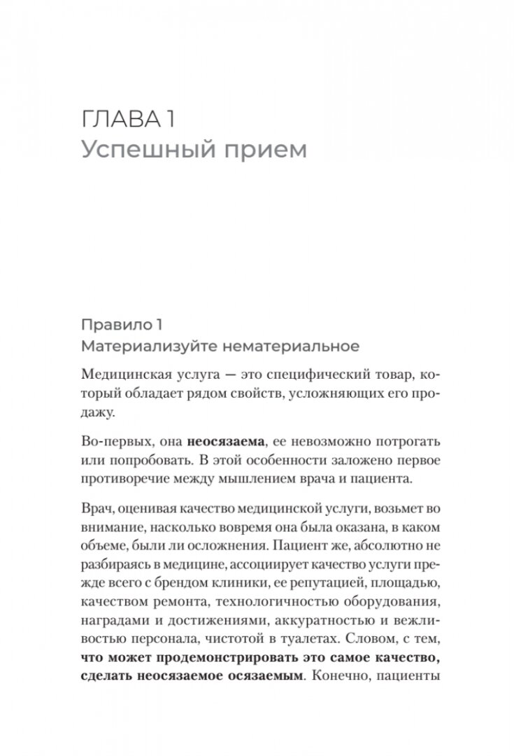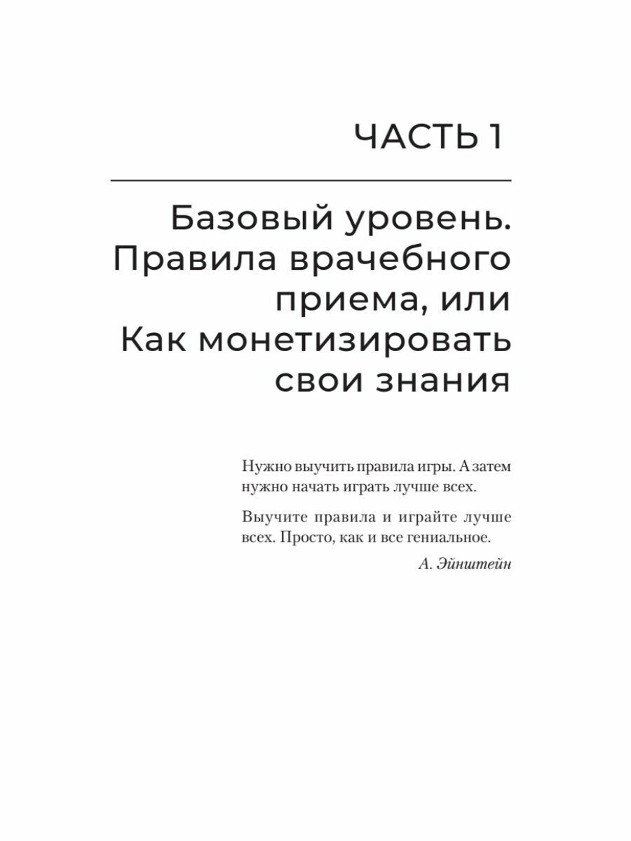 Во второй части книги автор предлагает правила врачебного приема, которые помогут всем врачам стать еще более успешными. Правила выстроены в четкую схему, а сам прием — в пошаговую инструкцию, в последовательное выполнение действий.