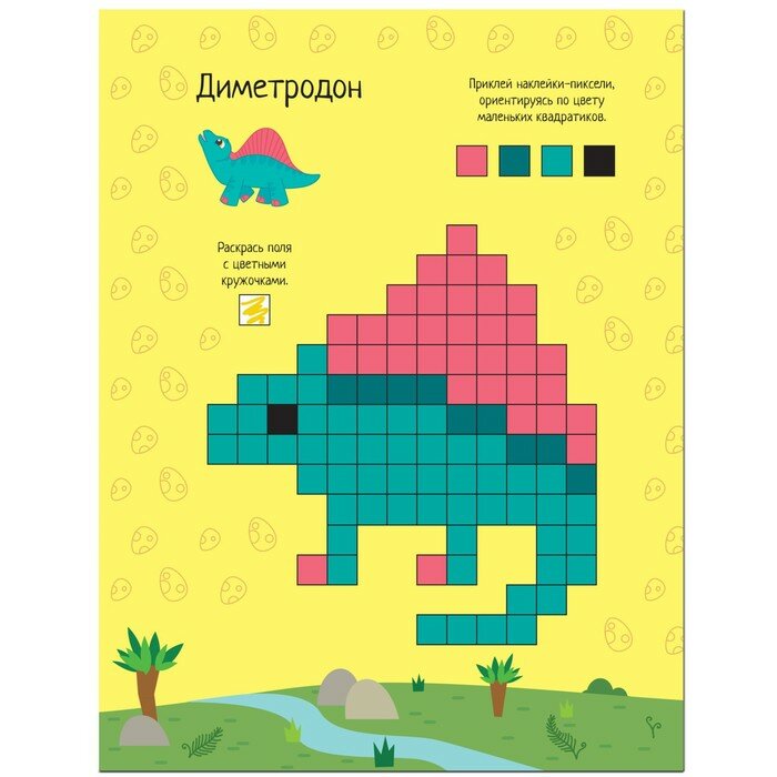 Динозавры (Пиксели. Клеим и рисуем), книжка с наклейками