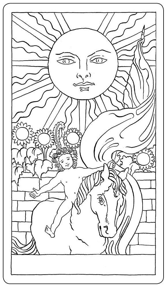 Классическая колода карт Таро А.Э. Уэйта и П.К. Смит представлена в виде, удобном для самостоятельного раскрашивания. Эта своего рода медитативная работа с изображениями позволит создать колоду карт с комфортной для пользователя цветовой гаммой. Кроме того можно быть уверенным, что ни один - даже самый маленький - элемент рисунка не ускользнет от внимания и в результате сформируется наиболее полное представление о символическом наполнении этой колоды карт.