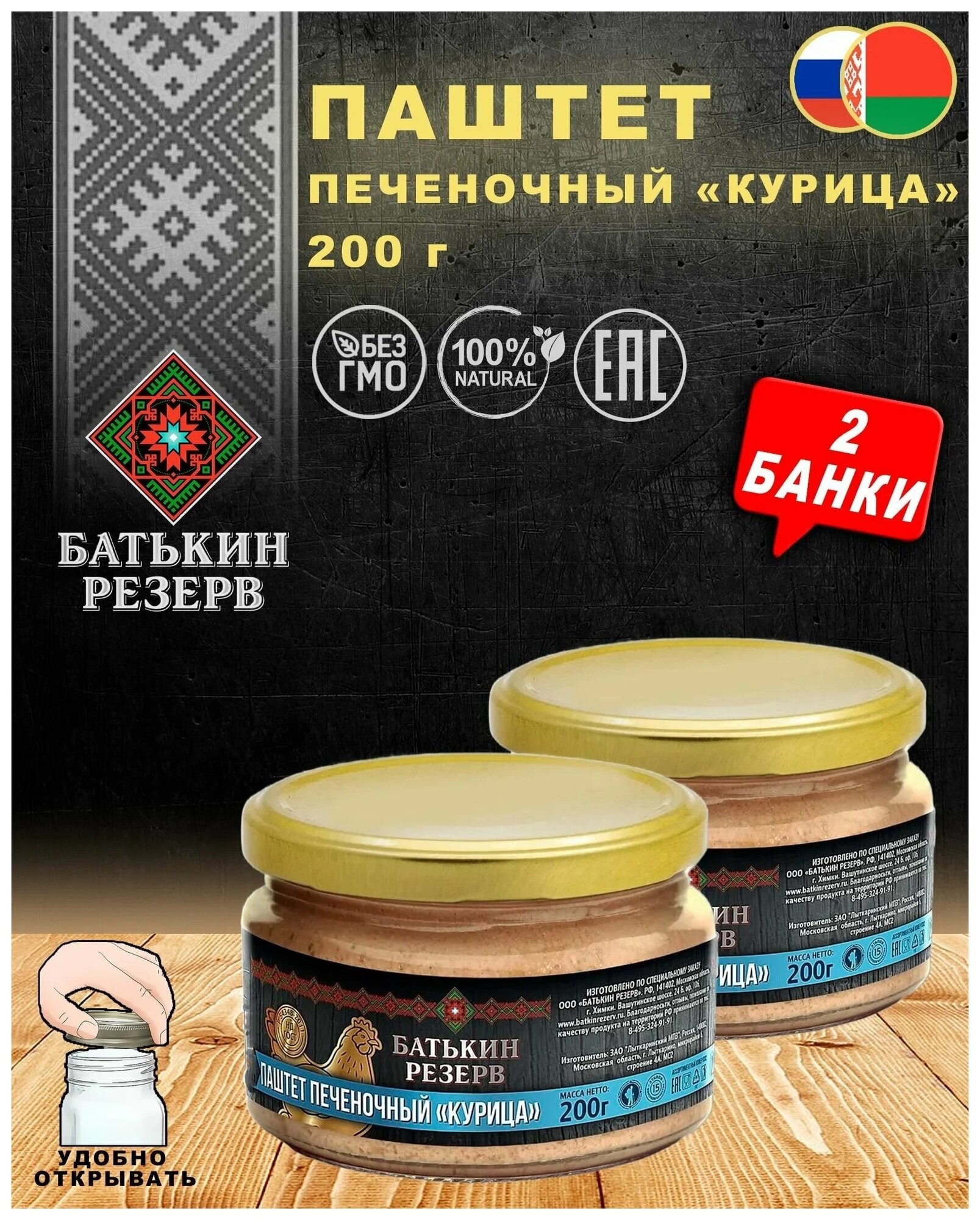 Откройте для себя настоящий вкус утонченного паштета с печеночным ароматом от бренда «Батькин резерв». Наши куриные паштеты представляют собой высококачественный мясной продукт, изготовленный в соответствии с гостом и полностью соответствующий самым строгим стандартам.В каждом баночном деликатесе от «Батькин резерв» вы найдете только натуральные ингредиенты, подчеркивающие неповторимый вкус паштета. Этот продукт идеально подходит для тех, кто ценит правильное питание, а также для любителей активного отдыха, будь то рыболовы, охотники, путешественники, туристы, дачники или заботливые домохозяйки.Паштет «Батькин резерв» - это не просто вкусный деликатес, но и продукт, который уважает ваш выбор заботы о здоровье. Без ГМО, консервантов и искусственных добавок.Позвольте себе насладиться лучшим – выбирайте паштеты «Батькин резерв» и дарите себе и своим близким настоящее гастрономическое удовольствие!