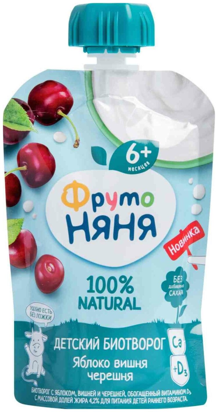 Биотворог ФрутоНяня Яблоко вишня черешня 4.2% 90г