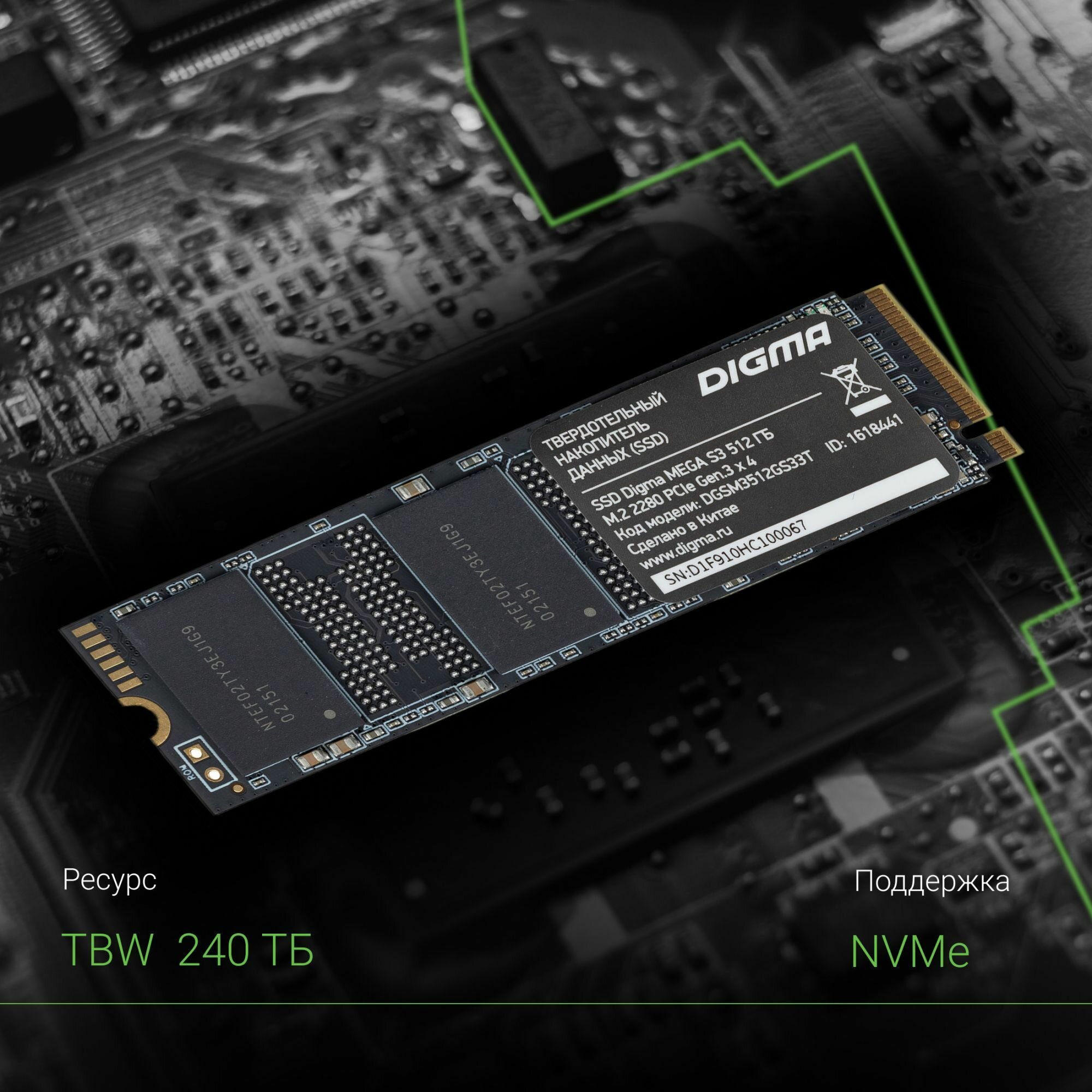 Накопитель SSD M.2 2280 Digma DGSM3512GS33T 512GB 3D NAND TLC 2080 МБ/с/1700 МБ/с PCI-E x4 NVMe rtl MEGA S3