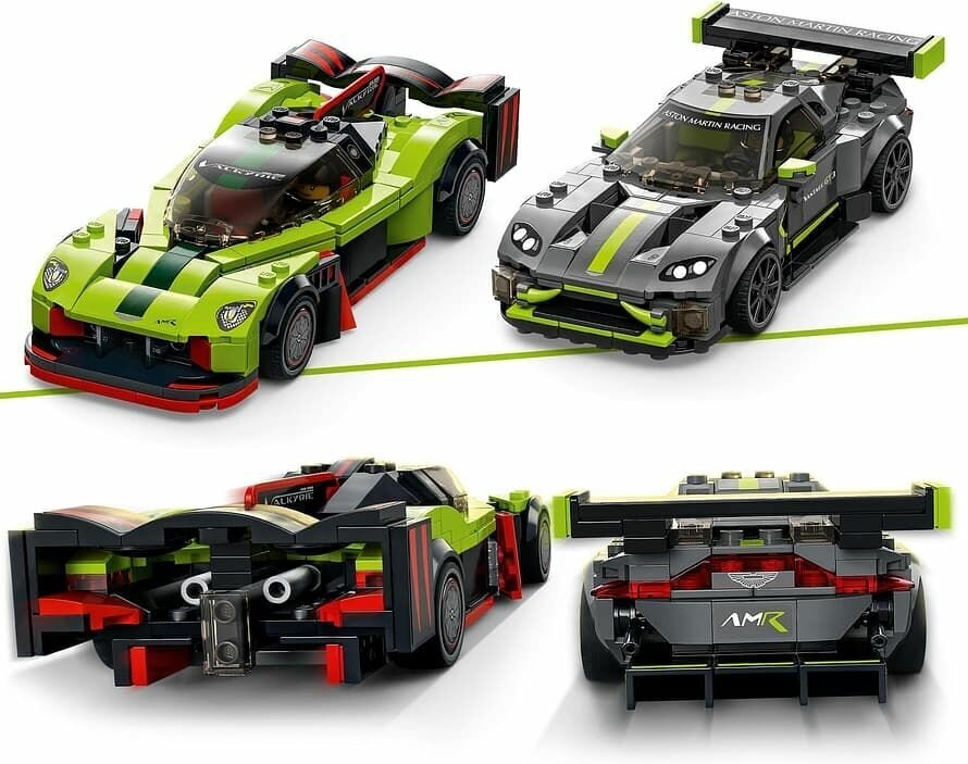 - Модели LEGO® машин Aston Martin Valkyrie AMR Pro и Aston Martin Vantage GT3 — игровой набор для детей и энтузиастов, увлеченных гоночными автомобилями и инновационными машинами.