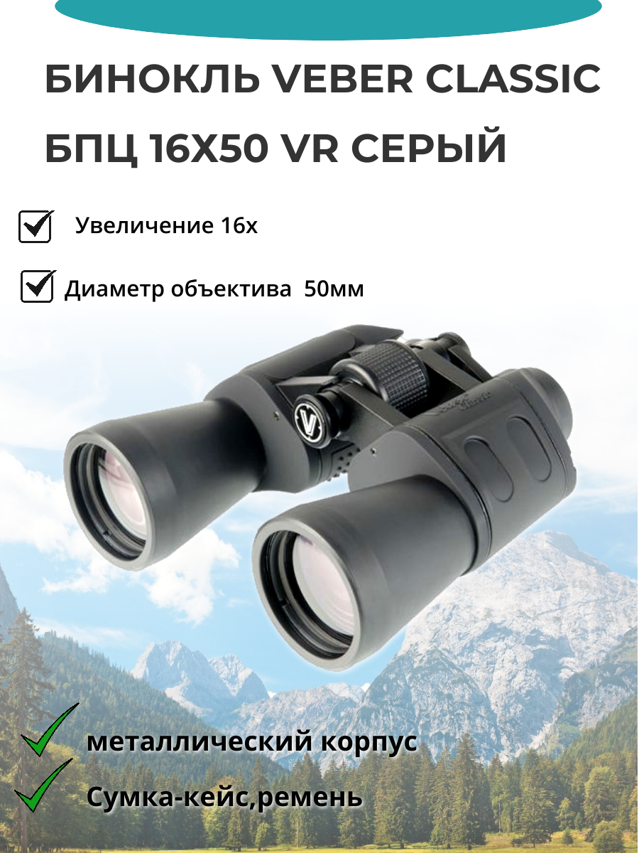Сервис сравнения цен СкидкаГИД предлагает сравнить цены на товар «Бинокль Veber Classic БПЦ 16x50 VR серый (П118-70677)»