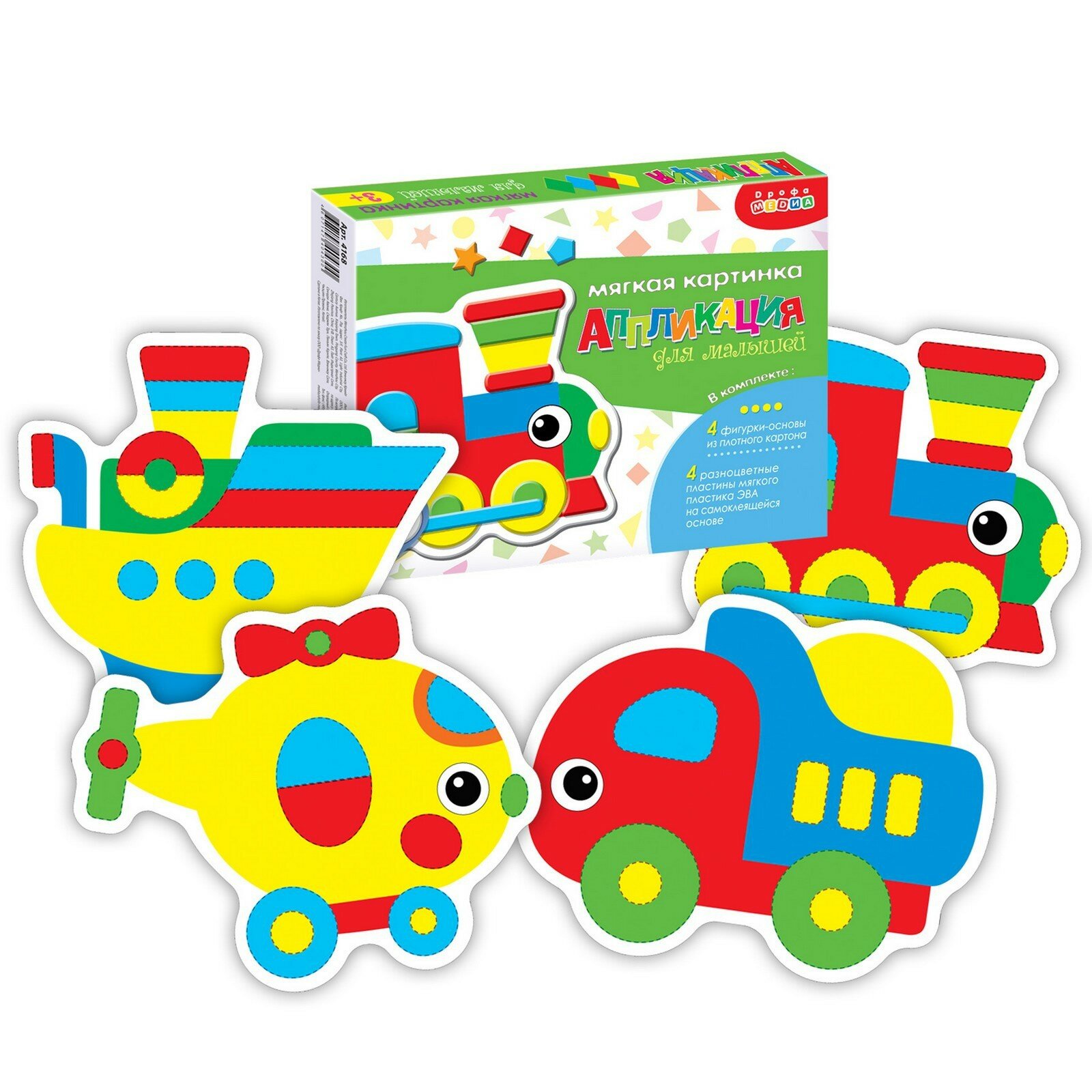 Яркая и выразительная аппликация с простыми и весёлыми картинками. Для работы не нужны ни клей, ни ножницы. В комплекте - мягкие детали, вырубленные из объёмного ЭВА на клеевой основе, которые легко приклеиваются на картинку-основу. Сама картинка небольшого размера, что поможет малышу легко справиться с работой. В результате получится прекрасная композиция - первая аппликация малыша! В наборе четыре яркие картинки, с изображениями машинки, паровозика, грузовичка и подводной лодки. Такой набор обязательно понравится любому мальчику!