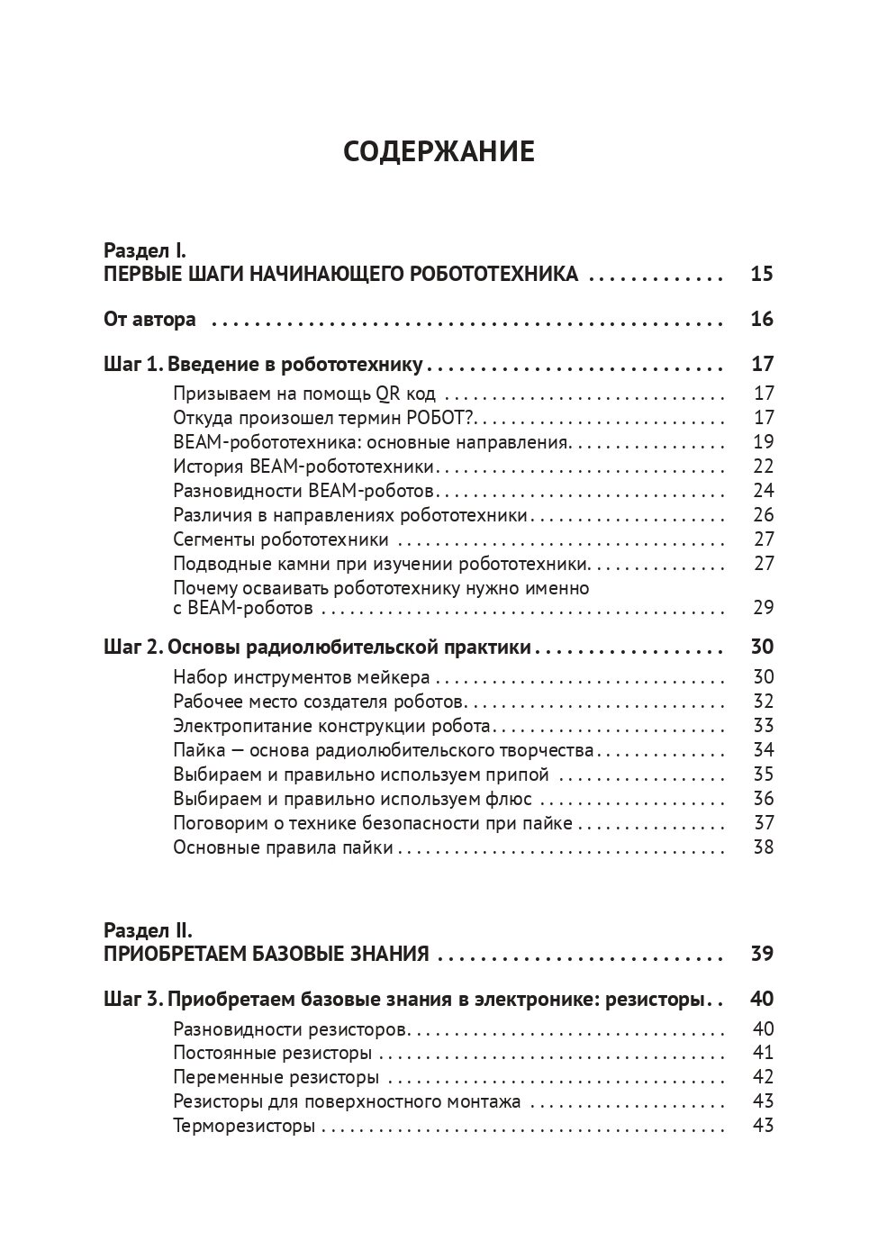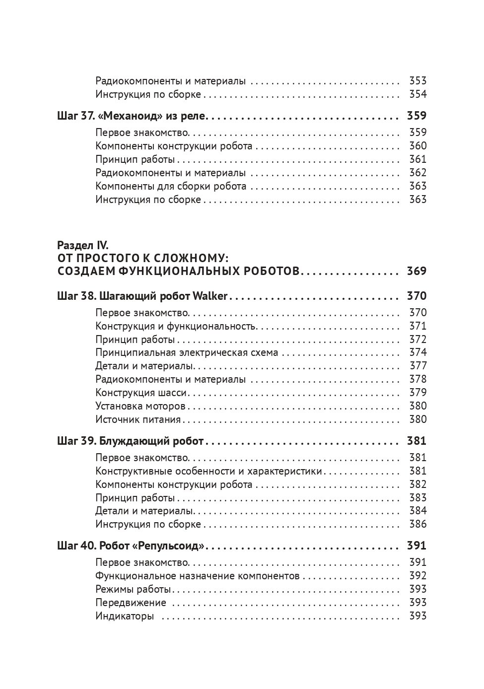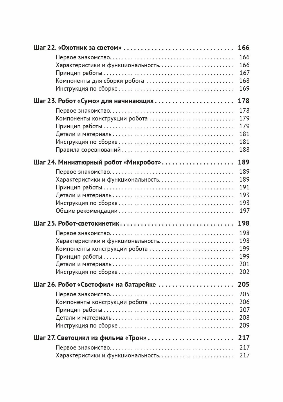 Представлены 35 практических конструкций роботов. Освоению процесса создания роботов помогут сотни иллюстраций. В теоретической части к каждому проекту дается точное описание электрических процессов для полного понимания того, как работает схема робота. В практической части каждого проекта показана последовательность монтажа/сборки и настройки работающей модели. Книга представляет образовательную программу для кружков робототехники. Книга предназначена для широкого круга читателей: от школьников до студентов, радиолюбителей или просто увлеченных радиотехническим творчеством людей.