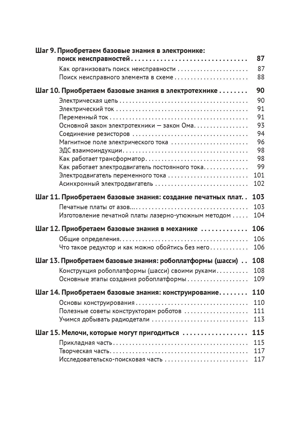 Книга посвящена робототехнике, смело вошедшей в нашу повседневную жизнь. Интерактивный самоучитель открывает читателю удивительный мир роботов: от изучения основ до создания практических конструкций. Рассмотрены азы электроники, механики, электротехники, конструирования. Познавательная информация представлена от простого к сложному и включает подробные объяснения всех важных частей творческого процесса. Эти знания позволят чувствовать себя уверенно при практической работе в робототехнике, освоить в дальнейшем специальность «конструирование робототехнических систем и устройств».