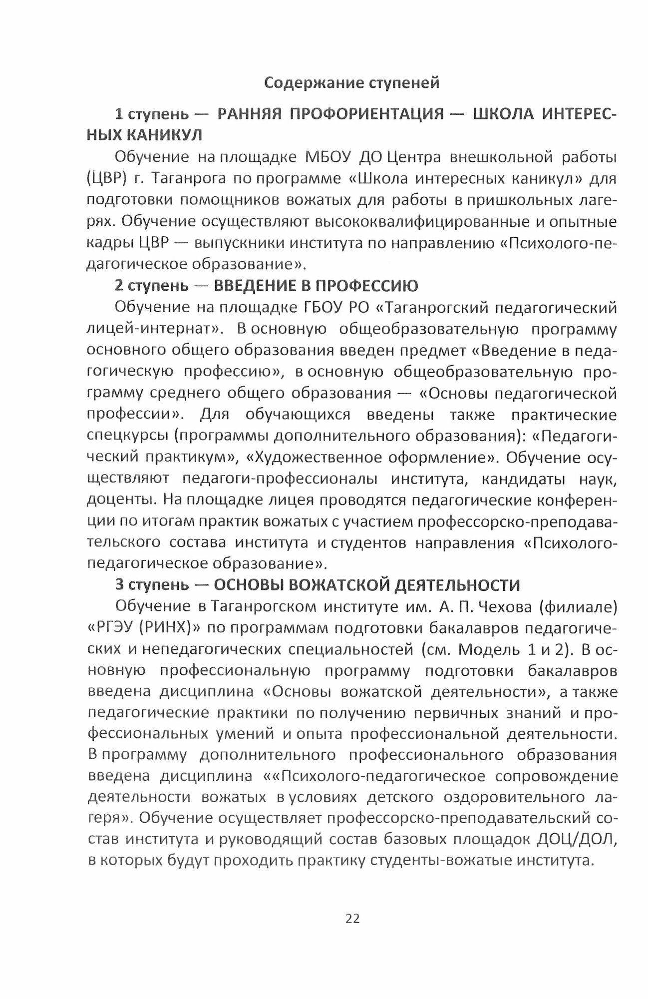 С целью методической и организационной помощи студентам, осваивающим азы вожатского мастерства в рамках изучения дисциплины «Основы вожатской деятельности», а также педагогам, сопровождающим педагогическую практику студентов в вузе и педагогам-организаторам курирующим деятельность школьников по направлениям РДШ, разработано данное учебное пособие. Спецификой пособия является представление моделей подготовки вожатых в вузе (на примере ТИ имени А. П. Чехова (филиала) «РГЭУ (РИНХ)») и опыт работы подготовки обучающихся к летней оздоровительной кампании (на примере ГБОУ РО «Таганрогский педагогический лицей-интернат»). Пособие включает как теоретические вопросы, так и практические рекомендации педагогам для организации педагогической практики вожатых как на школьных площадках, так и в загородных ДОЦ/ДОЛ. Один из разделов пособия построен в форме рабочего дневника практиканта, в котором фиксируются все значимые моменты работы вожатого, включающие проведение наблюдений и диагностики, педагогических мероприятий, развивающих занятий с детьми, тренингов, бесед и т. д. Дневник фиксирует как динамику развития коллектива, руководимого вожатым, так и процесс профессионального становления студента как будущего специалиста. Серия тестов, опросников, игровых методик и упражнений дополняют портфель вожатого и расширяют возможность выбора применяемых методик в работе с детьми разного уровня в условиях временного детского коллектива.