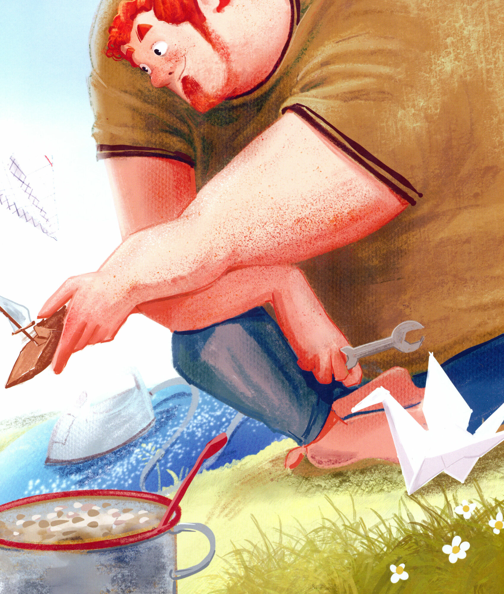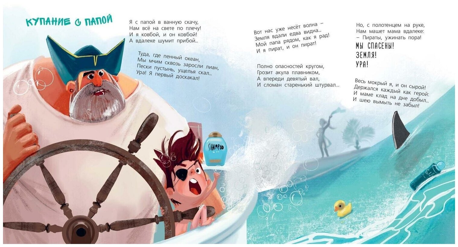 Яркие красочные иллюстрации. Папа воспринимается именно глазами ребенка, даже его рост.