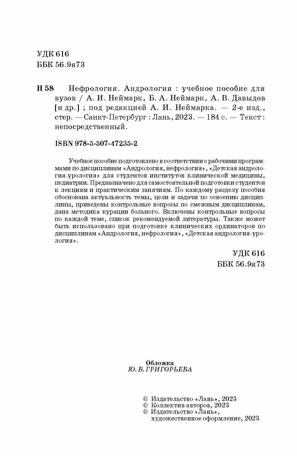 Нефрология Андрология учебное пособие для вузов (Неймарк Александр Израилевич, Неймарк Борис Александрович (соавтор), Давыдов Андрей Викторович (соавтор)); Лань, 2022
