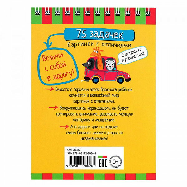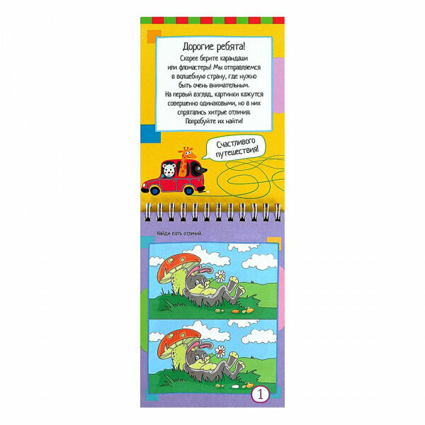 Открыв этот блокнот, ребёнок увидит картинки, которые только на первый взгляд кажутся одинаковыми. На самом деле в них спрятаны хитрые отличия, которые нужно найти. Выполняя задания, ребёнок будет развивать внимание, мелкую моторику и мышление. А в дороге или на отдыхе такой блокнот окажется просто незаменимым. Адресовано детям от 7 лет.