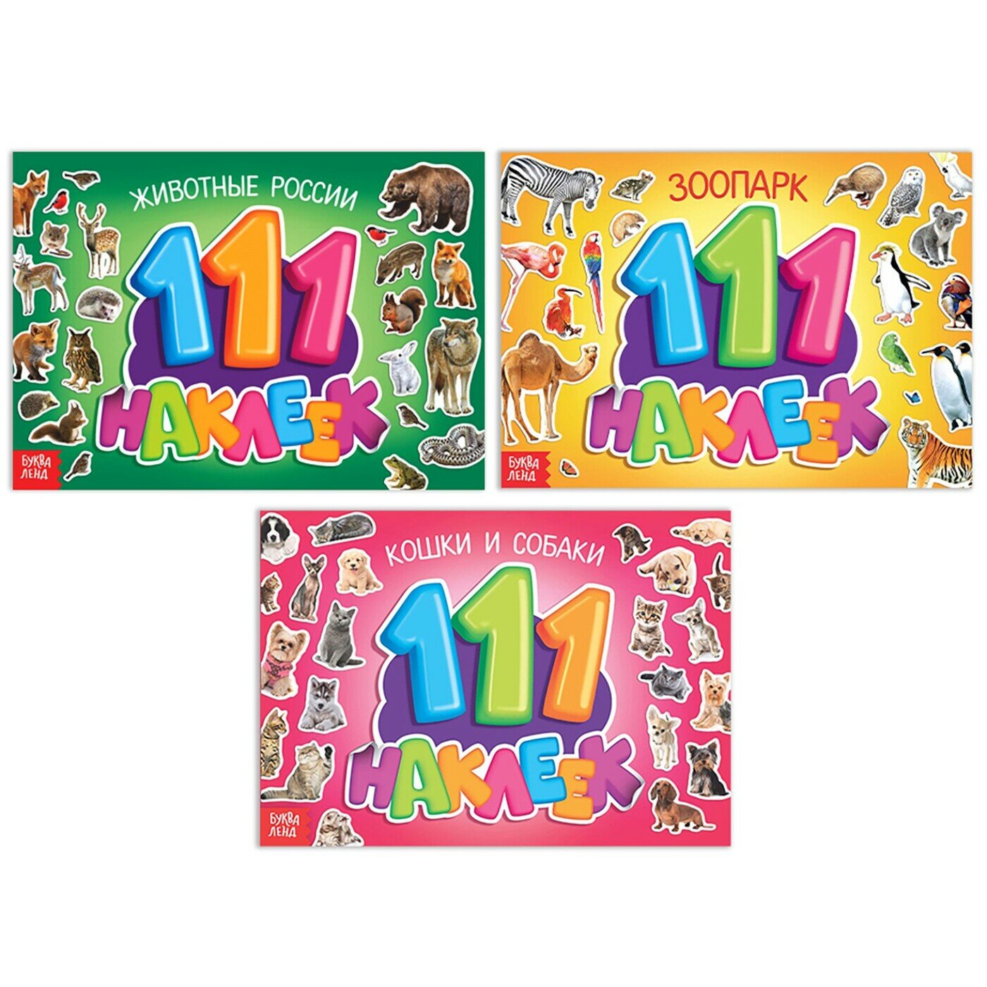 111 наклеек "Изучаем животных" (комплект из 3 книг); Буква-ленд, 2019