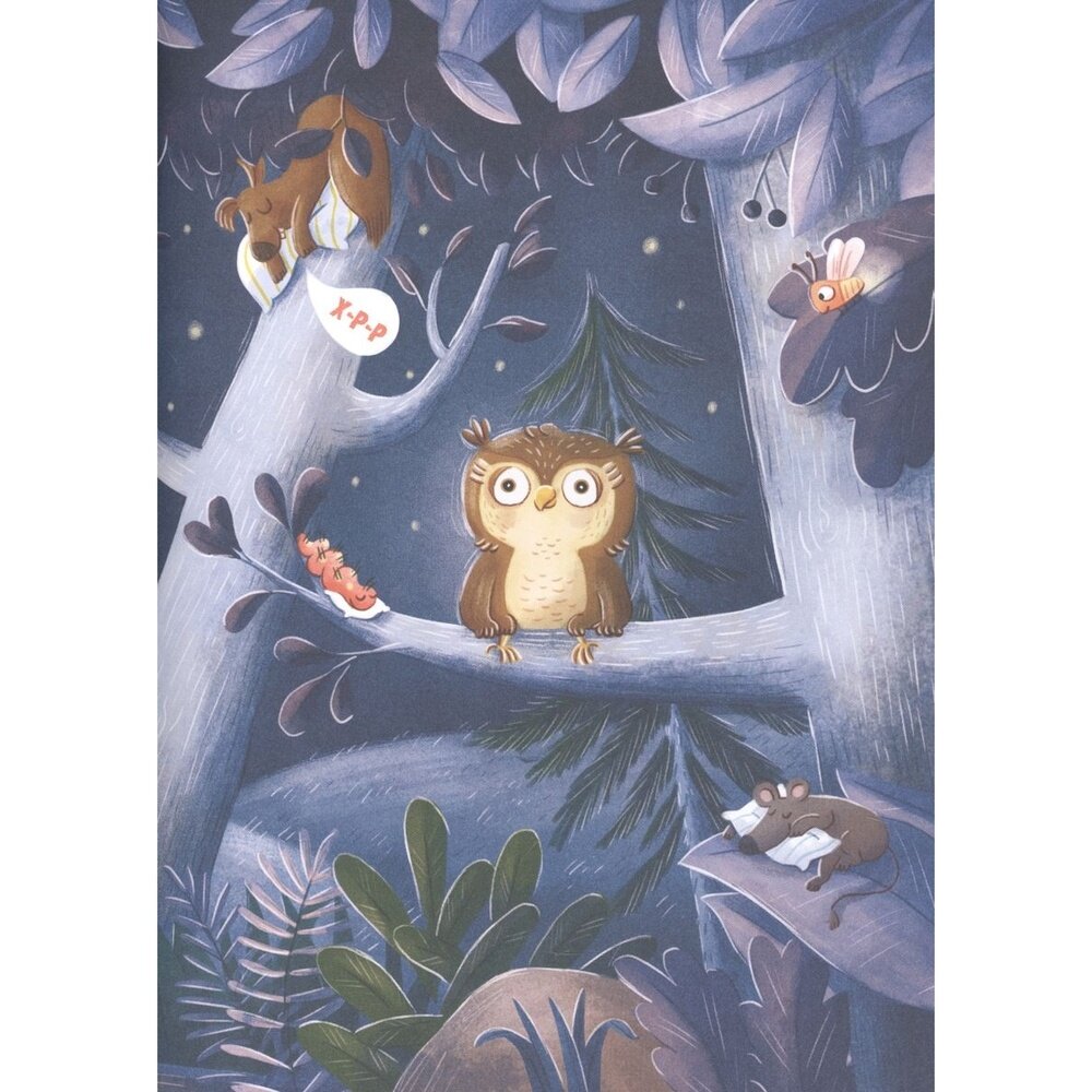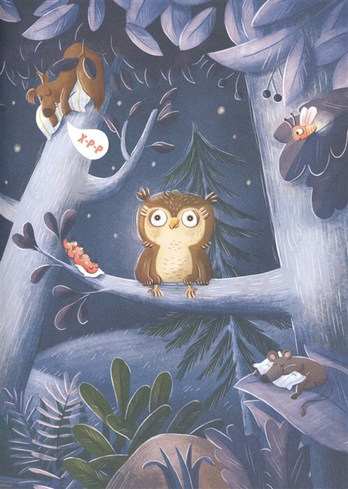 С довольно необычной стороны рассматривается жизнь ночного животного - совы. Из-за своего образа жизни какое-то время она была вынуждена быть в одиночестве, хотя так сильно хотела себе друга. Дело в том, что все остальные животные жили по другим часам - они спали ночью, а веселились днем. Такому ночному жителю, как сове, это не подходило и она, уставшая, засыпала на всех играх. Ей нужен был кто-то подстать ей, - ночной. С кем в итоге дружит сова вы сможете узнать, дочитав книжку. Рассказ написан в стихотворной форме и, как изначально нам заявляет автор, является колыбельной. Не могу с уверенностью сказать, что эти стихи убаюкивают, скорее роль играет сам сюжет - вечно сонная сова, но тут ребенок может запутаться, начать брать пример с совы и тоже не спать ночь. Ладно! На самом деле история очень приятная и необычная, стишки легкие, можно потренировать чтение, ну и, конечно, яркие иллюстрации и вообще большой формат книги - это всегда выигрыш!