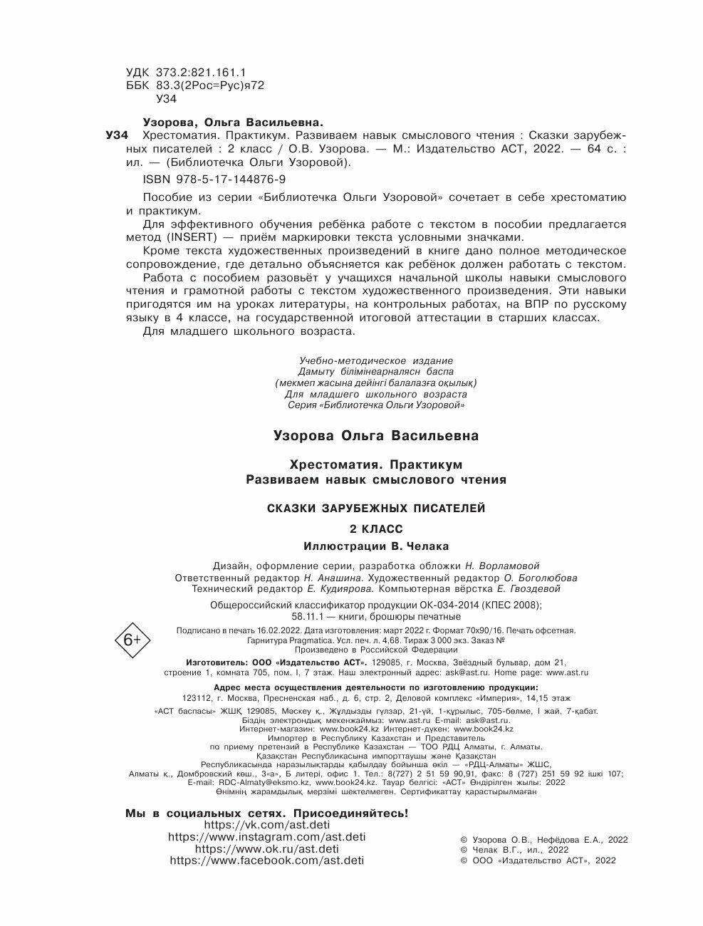 Хрестоматия. Практикум. Развиваем навык смыслового чтения. Сказки зарубежных писателей. 2 класс (Ольга Узорова); АСТ, Малыш, 2022