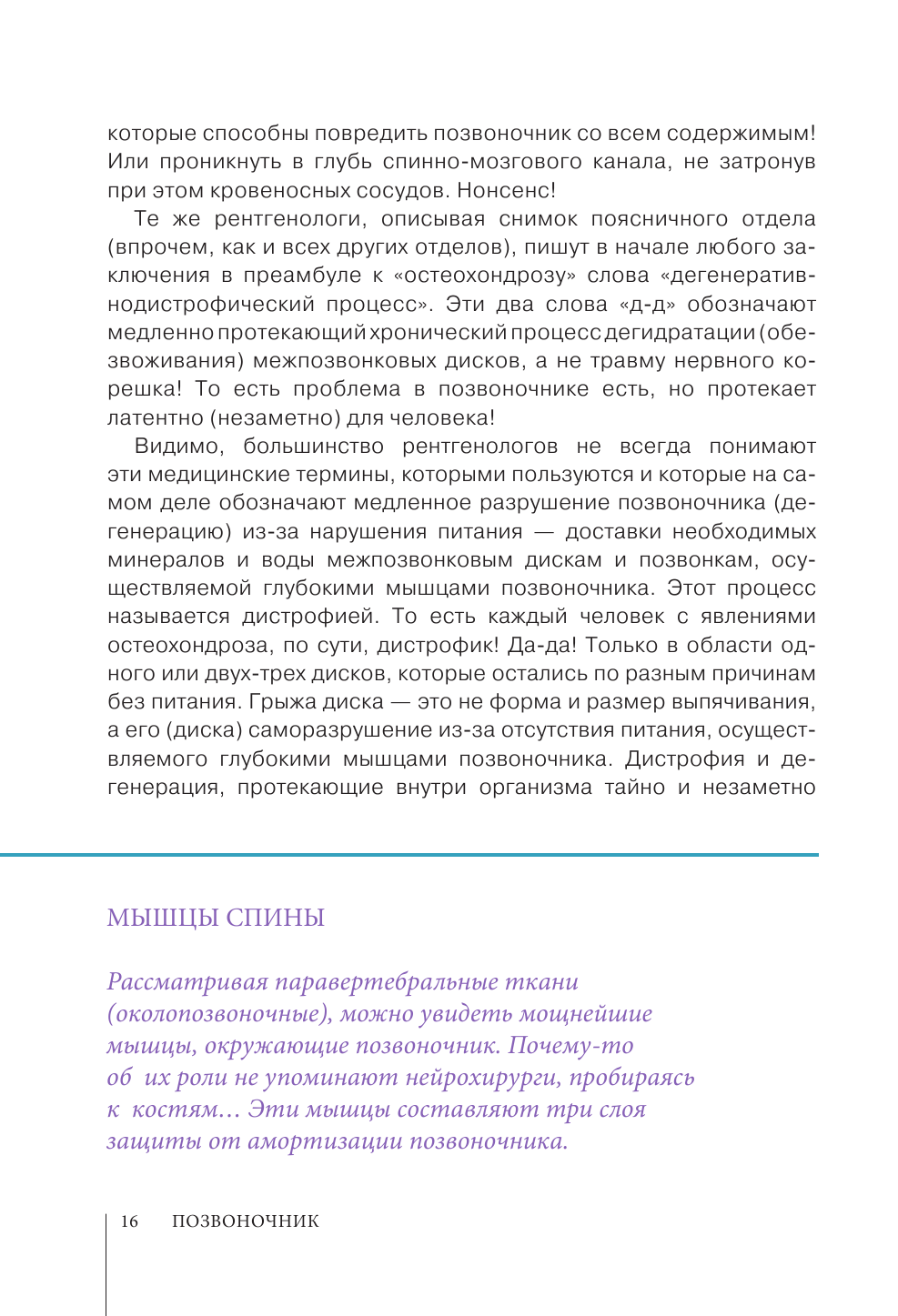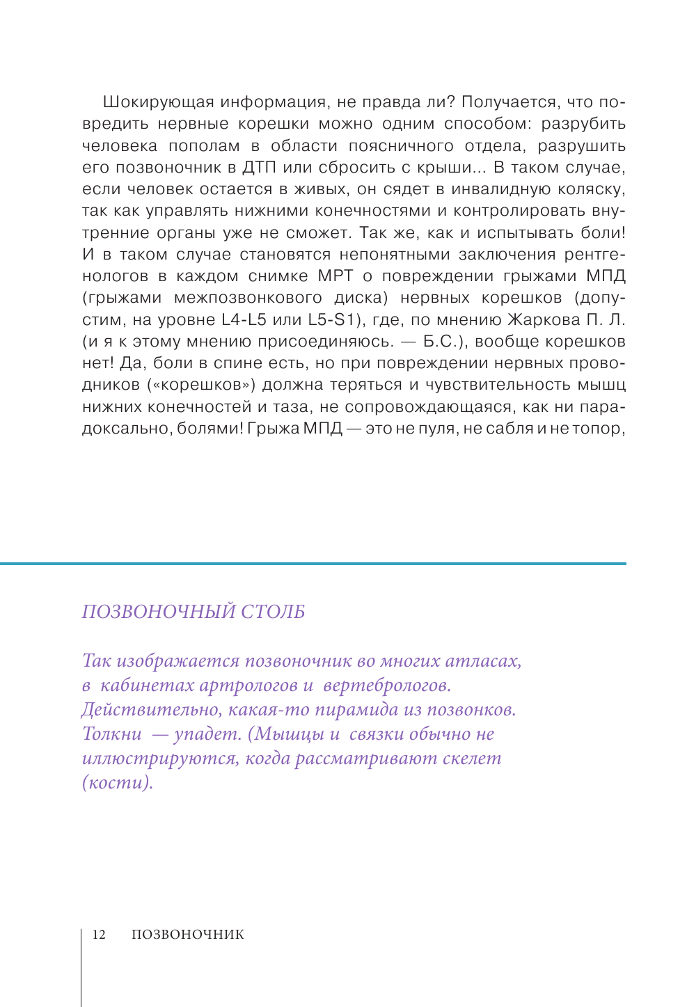 Наиценейшая по информативности книга! Наглядно объясняет причины боли в спине, как с ней бороться и чего не нужно делать, чтобы не навредить себе! В этой книге вы не найдете целебных упражнений или каких-то программ реабилитации , но информация, которую преподносит Бубновский, перевернет ваше представление о вашем организме в принципе. Автор учит, как жить и что предпринимать, чтобы человек был здоров в любом своем возрасте - и в молодости, и в старости. И предостерегает от совершения скоропалительных шагов в отношении своего позвоночника. Книга однозначно должна быть в каждом доме, где небезразлично свое здоровье☝️ В издании очень много картинок, полезных и подробных. Сама книга не толстая, бумага плотная, шрифт комфортный. Есть претензии к типографии или издательству - кто следит за текстом на выходе)) Немало опечаток, перемены местами букв в слове, задвоенных букв. Считаю, что это непозволительно к книге такого плана, да и в целом к книгам☝️