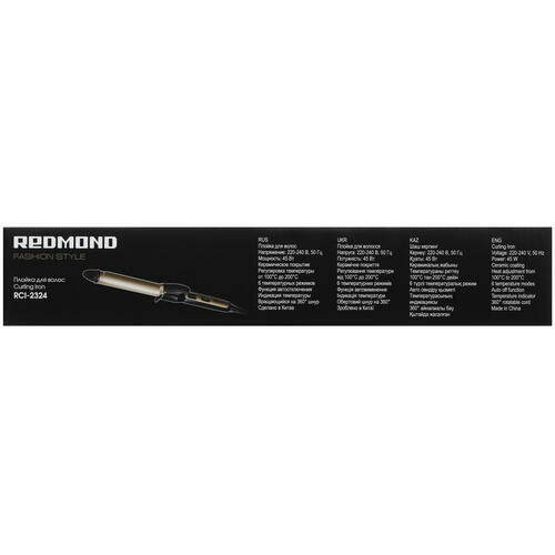 | Прочие особенности и свойства | Электрощипцы Redmond RCI-2324, предназначенные для завивки волос, имеют быстрый нагрев и работают в температурном диапазоне от 100 °С до 200 °С. Шесть температурных режимов позволяют подобрать оптимальный для своего типа волос (уровень и длительность нагрева в зависимости длины и густоты). ,,Работать со щипцами легко:сетевой шнур, вращающийся вокруг своей оси, и термоизолированный наконечник помогают удобно накрутить волосы, а на корпусе есть дисплей с индикацией температуры. Redmond RCI-2324 потребляют от электросети 45 Вт, имеют керамическое покрытие рабочей поверхности (материал очень долговечен и не пережигает волосы).,,,Напряжение:220-240 В, 50 Гц,Защита от поражения электротоком |