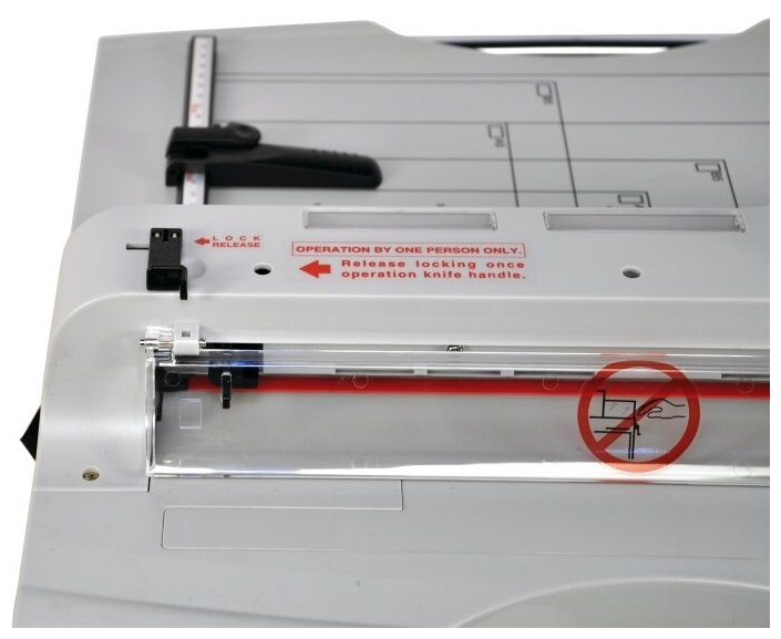 Настольный резак KW-triO представляет собой мощный резак для бумаги гильотинного типа с автоматическим приводом ножа. Предназначен для офисных нужд: резки визиток, различных бумажных бланков, фотобумаги. Модель предназначена для резания стопы бумаги до 5 мм с длиной реза до 360 мм. Резак имеет легкую пластиковую базу со стальной рукояткой, встроенное отделение для хранения аксессуаров, блокиратор ножа, подвижный ограничитель стопы и защитный экран