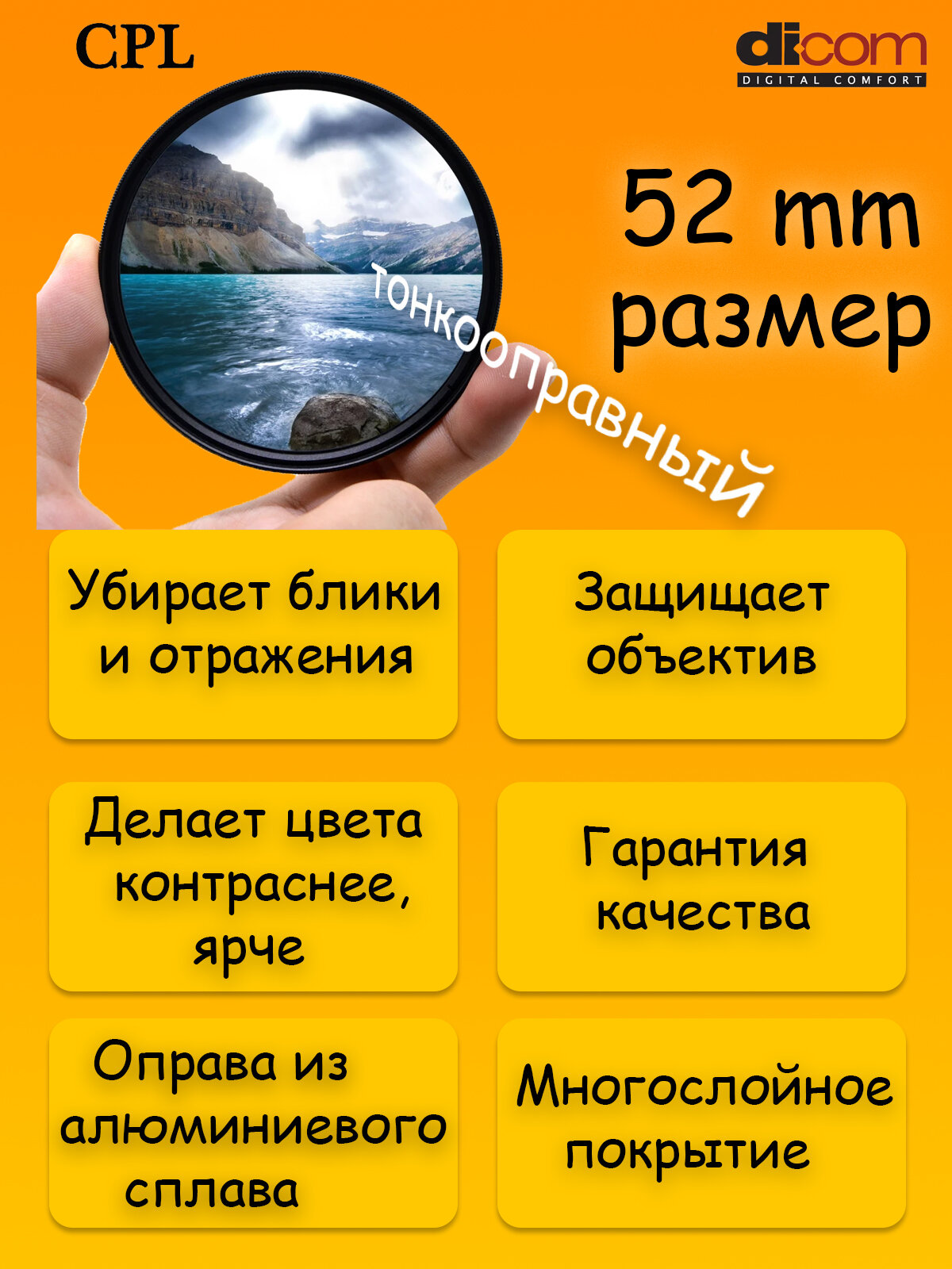 Сервис сравнения цен СкидкаГИД предлагает сравнить цены на товар «Светофильтр Dicom CPL Slim 52mm»