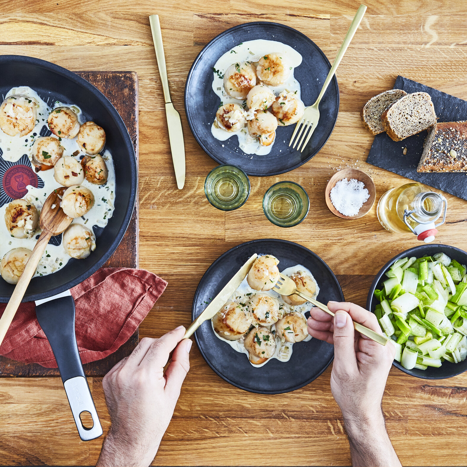 Аппетитное шипение курочки на сковороде, звон и плавное скольжение лопатки, переворот... Ваша посуда должна выдержать любой способ приготовления. Сковорода Tefal Unlimited предлагает качественно новый уровень эффективности. Посуда сохраняет свои превосходные антипригарные свойства надолго благодаря очень толстому дну Thermo-Fusion™ + и инновационному антипригарному покрытию Titanium Anti-Scratch, которое устойчиво даже к металлическим аксессуарам.