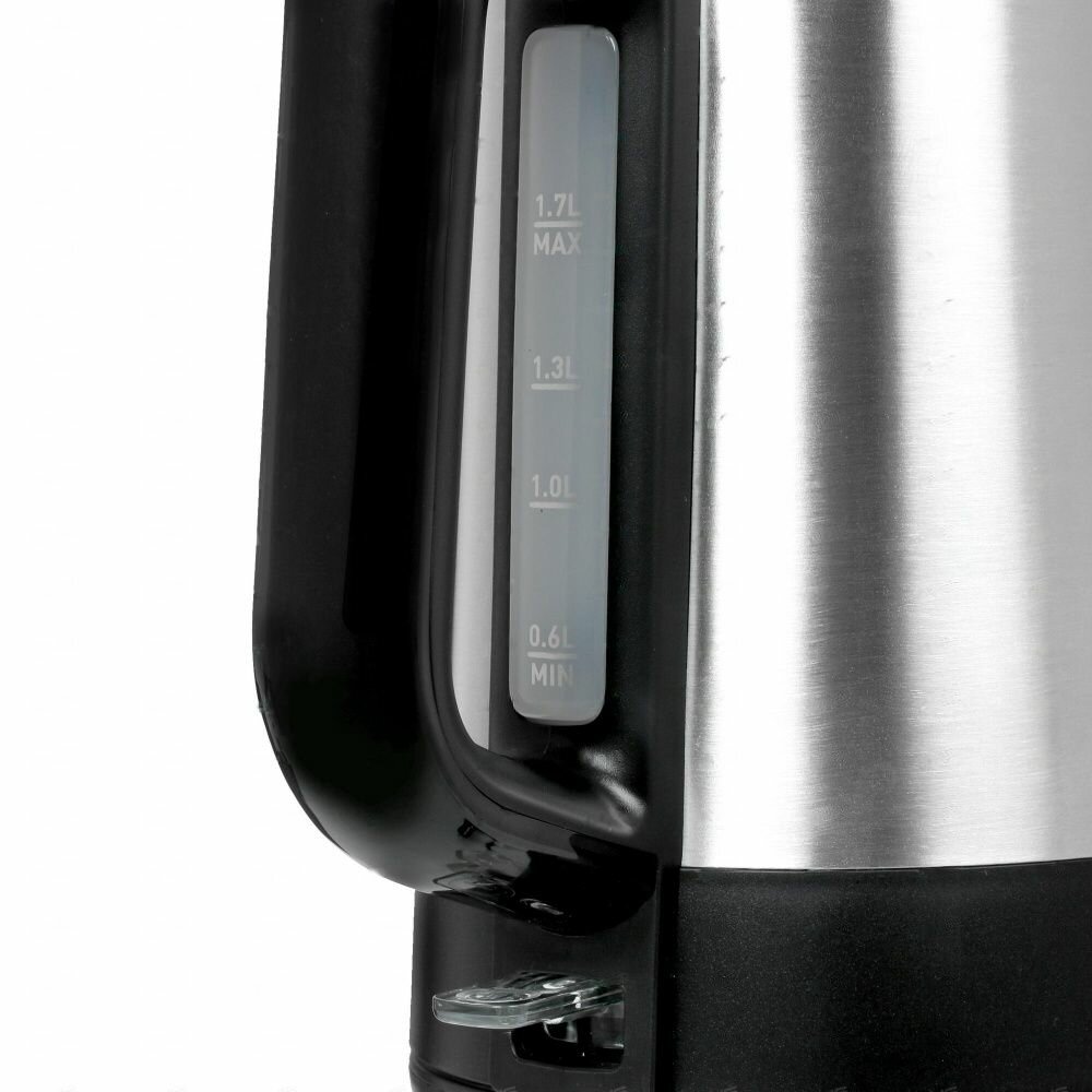Классический электрочайник с прочным корпусом из нержавеющей стали. Эта модель, оборудованная скрытым нагревательным элементом, позволяет быстро вскипятить до 1,7 л воды. Благодаря своей прочности, надёжности и презентабельному внешнему виду она подойдёт для использования дома или на даче. Удобная ручка, которая не скользит в ладони, даёт возможность легко поднимать чайник, переносить с места на место и наклонять так, как вам нужно. Синтетический фильтр улавливает накипь и не позволяет ей при наливании попасть в чашку. У вашего чая будет естественный вкус, без посторонних примесей. Система автоматического отключения срабатывает при закипании и перегреве, вызванном отсутствием воды в резервуаре.