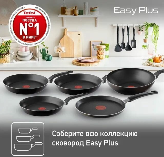 Приготовьте любимые блюда или попробуйте новые рецепты – посуда Easy Plus поможет добиться аппетитного результата. Благодаря равномерному распределению нагрева, качественному антипригарному покрытию и запатентованному индикатору Thermo-Signal® все ингредиенты готовятся при правильной температуре и с минимальным количеством масла, а вы получаете вкусные и полезные блюда каждый раз. А благодаря внешнему антипригарному покрытию посуду легко мыть после использования.