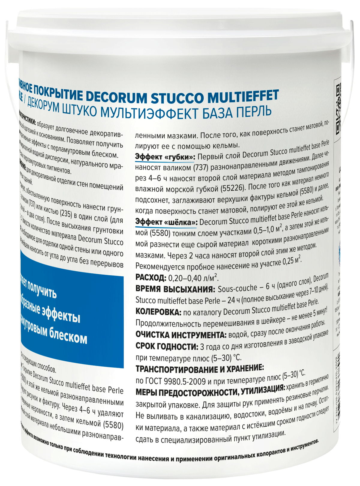 Особенности | По каталогу Decorum Stucco multieffet base Perle. Продолжительность перемешивания в шейкере – не менее 5 минут! При подборе цвета учитывайте, что на его восприятие влияют размер и освещенность поверхности, блеск материала, фактура поверхности и выбранный декоративный эффект. |