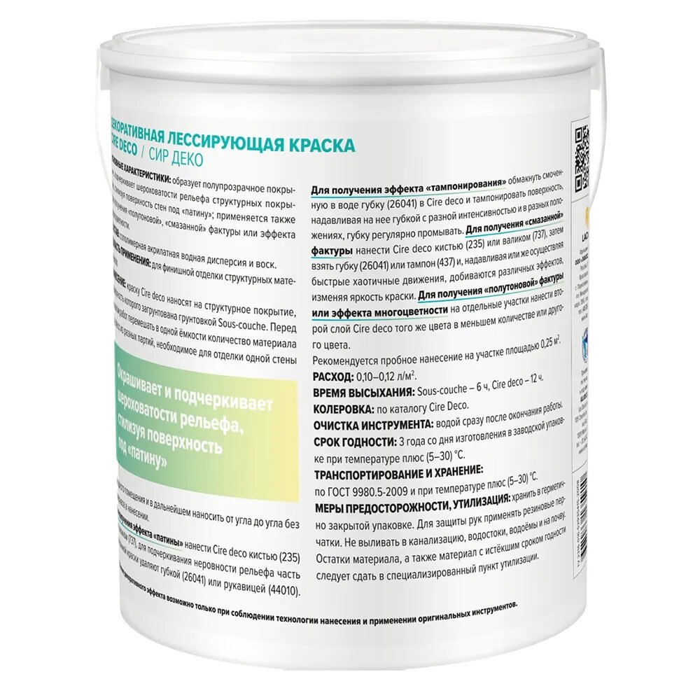 | Особенности | По каталогу Cire Deco. При подборе цвета учитывайте, что на его восприятие влияет размер и освещенность поверхности, блеск материала, фактура поверхности и выбранный декоративный эффект. |