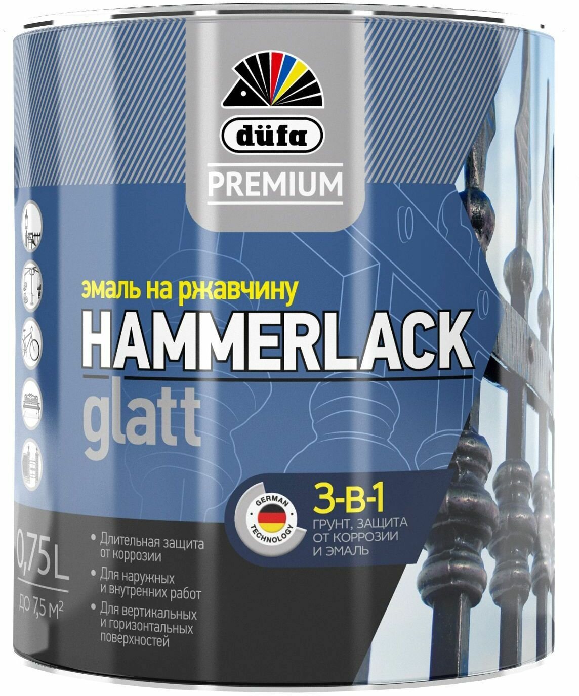 эмаль по ржавчине hammerlack серебристый ral-9006 гладкая 750л Dufa Premium HAMMERLACK